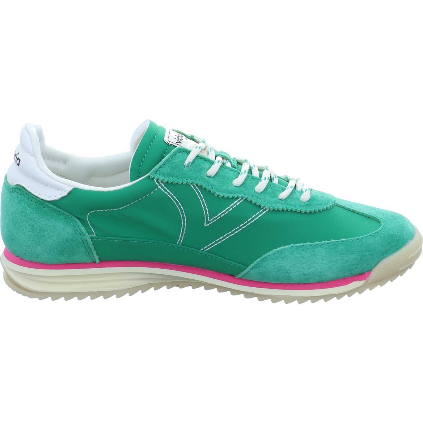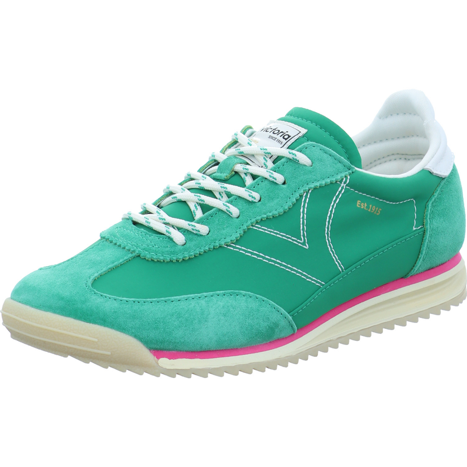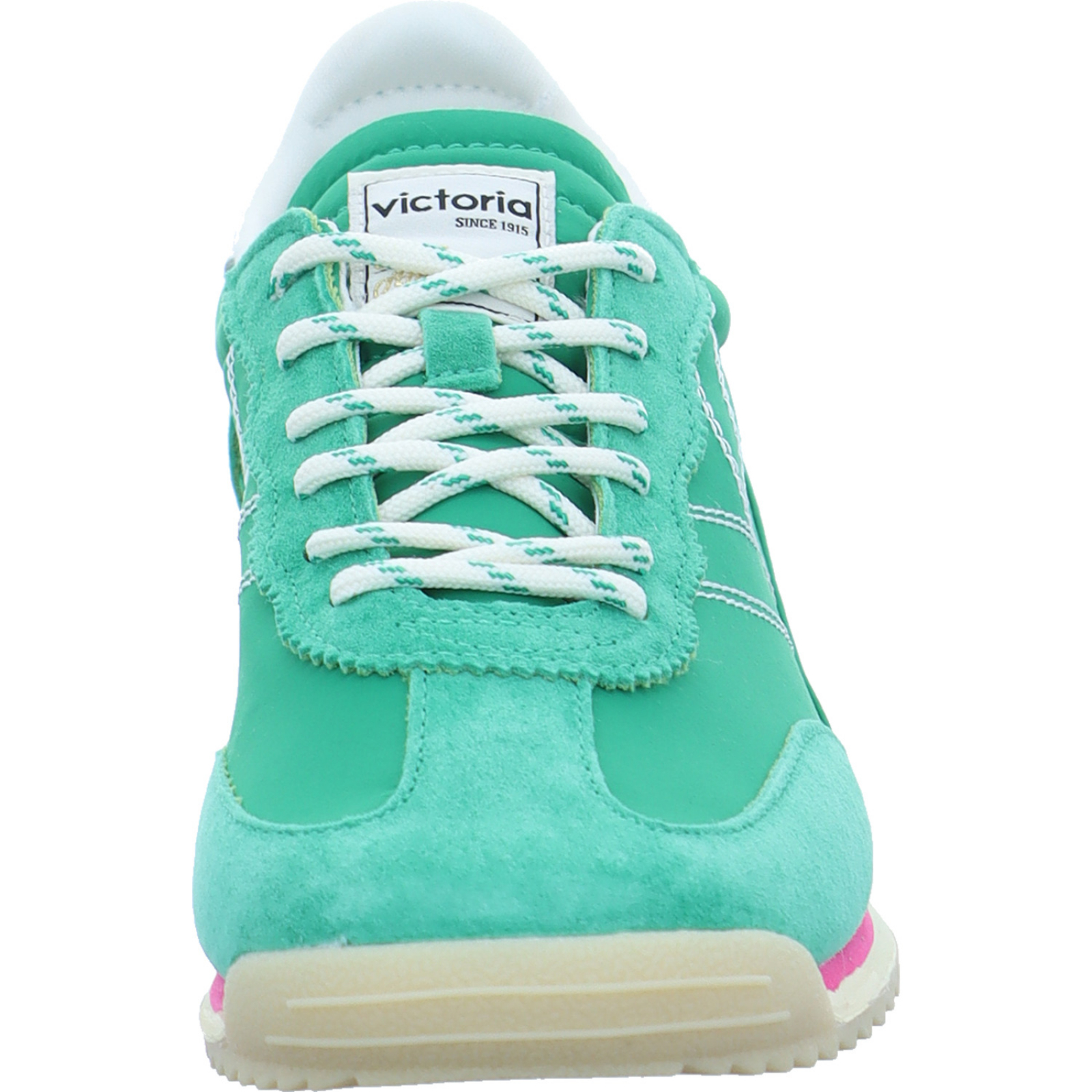 Herstellerinformation: Victoria Calzados Nuevo MilenioS.L P.Emp.La Maja, Zubia 3, 26580 Arnedo(La Rioja), ES calidad@nuevomilenio.es_____Der mittelgrüne Damen-Schnürhalbschuh 1158108-60 von Victoria besteht aus Veloursleder und High-Tech.