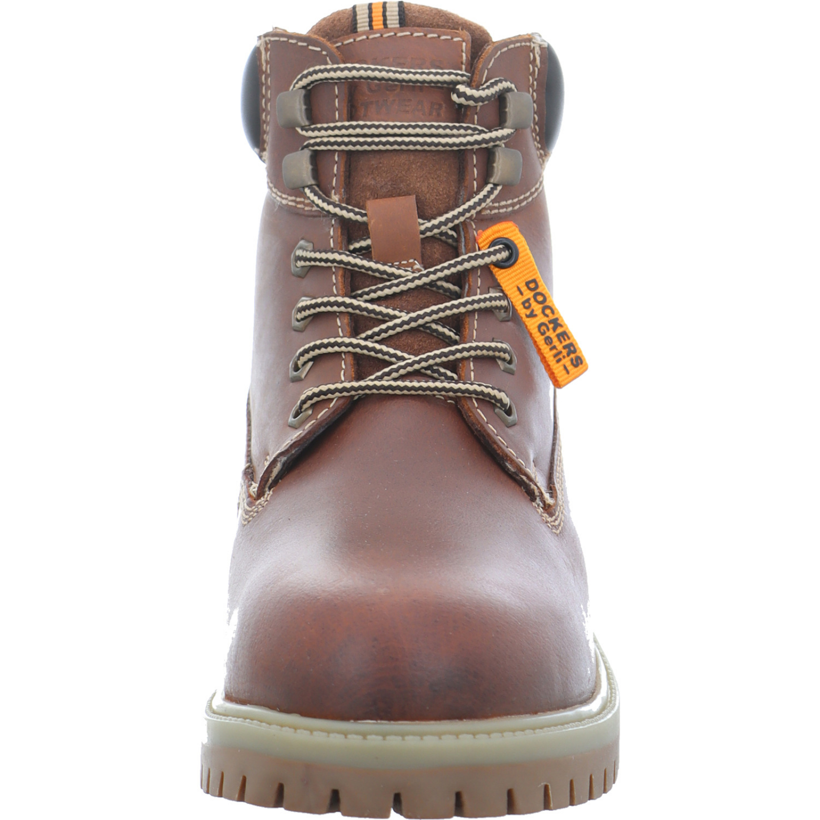 info@dockersbygerli.de_____Der mittelbraune Herren-Schnürbootie 53AX103-400-470 von der Firma Dockers basiert auf Fettleder und ist warm gefüttert.
