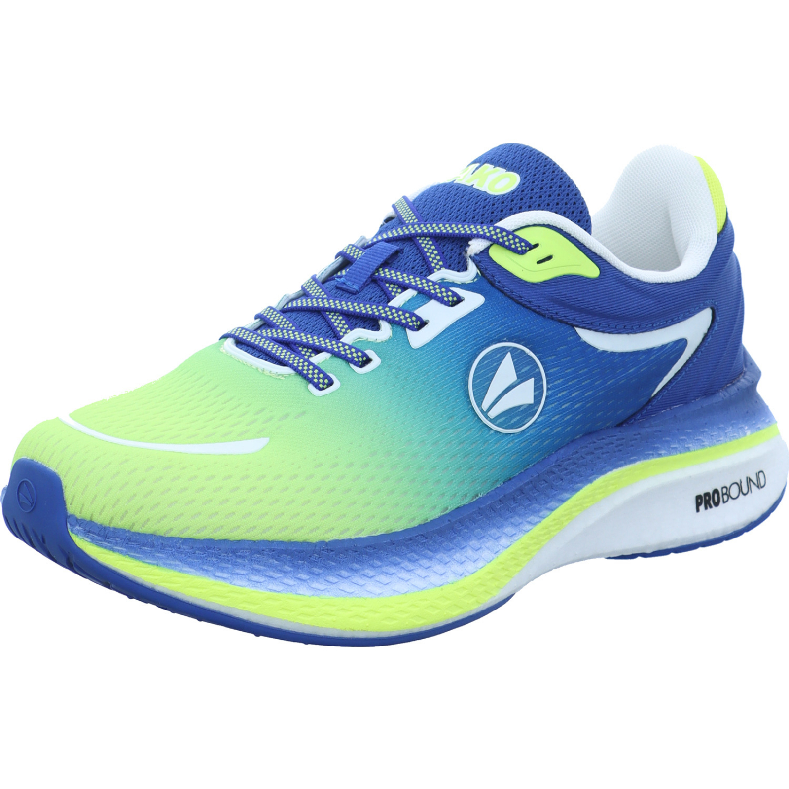 Herstellerinformation: JAKO AG Amtstraße 82, 74673 Mulfingen, DE service@jako.com_____Der blau-grüne Herren-Sportschuh J-CM Usain 380166-4391 von Jako besteht aus Mesh, Textil und High-Tech.