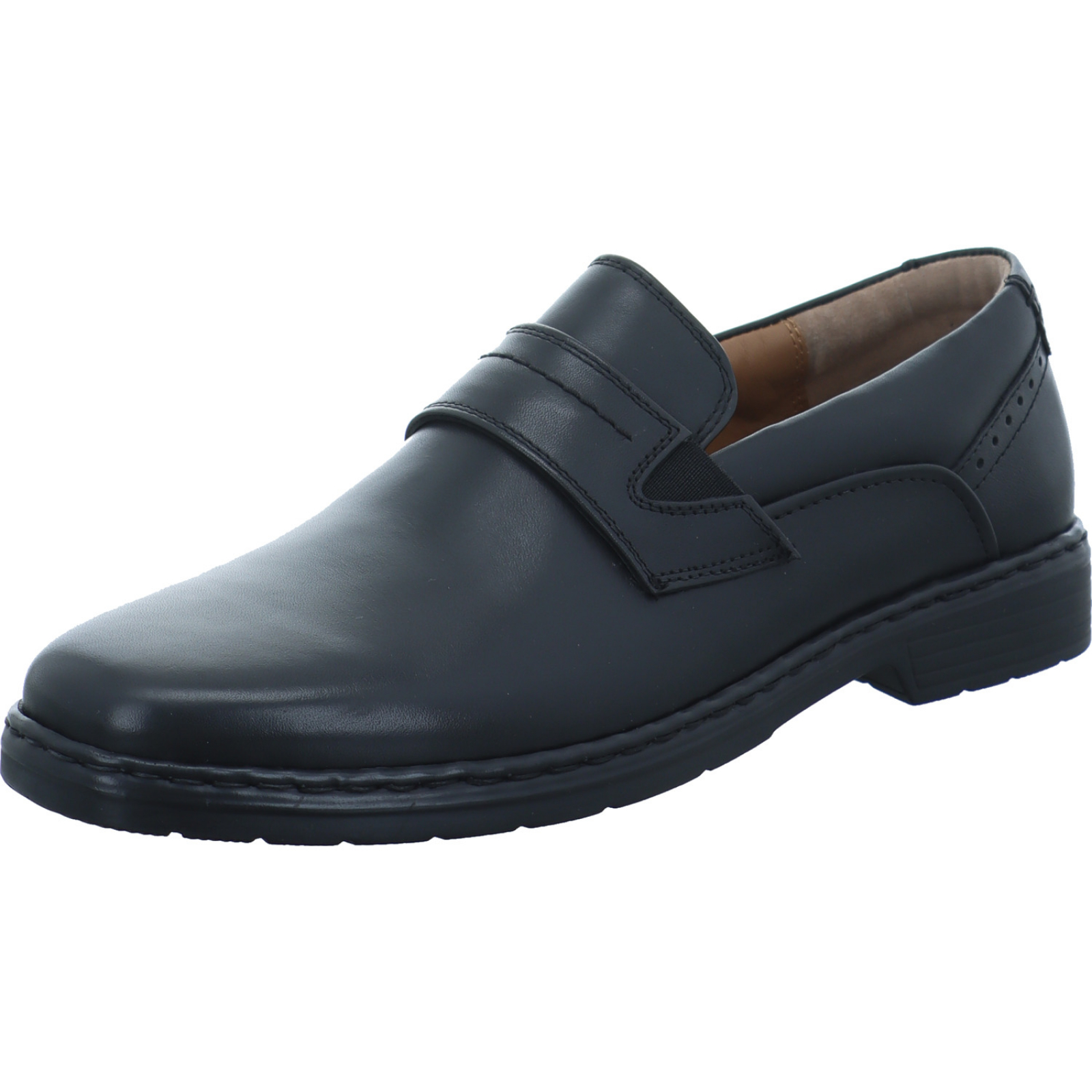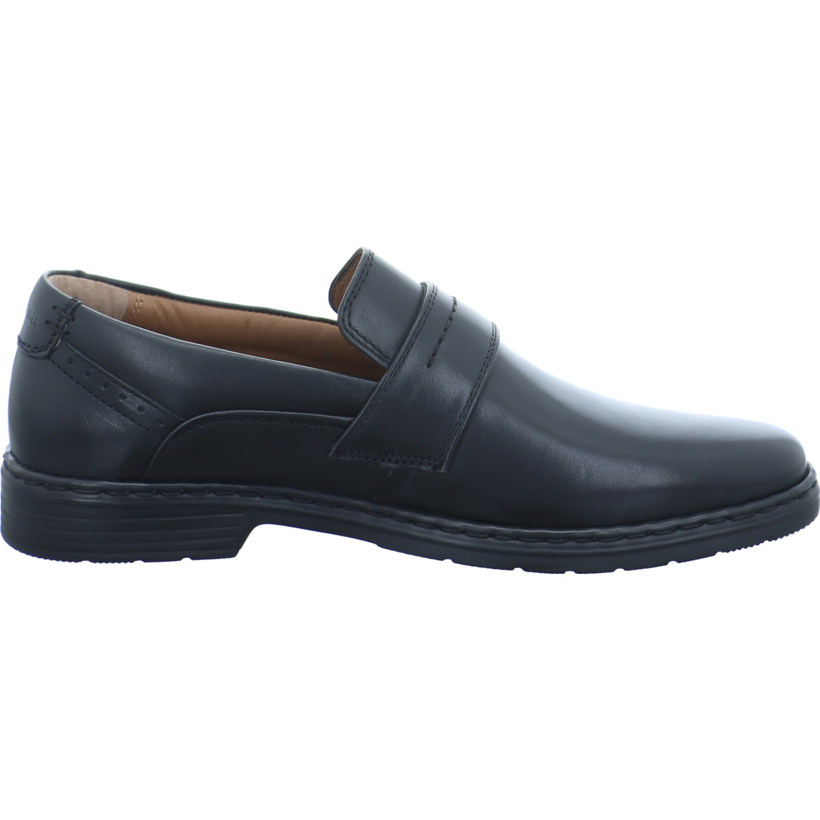 shop@josef-seibel.de_____Der elegante Herren-Slipper Alastair 15 42815859/100 von Josef Seibel besteht aus schwarzen Glattleder und hat ein Wechselfußbett.