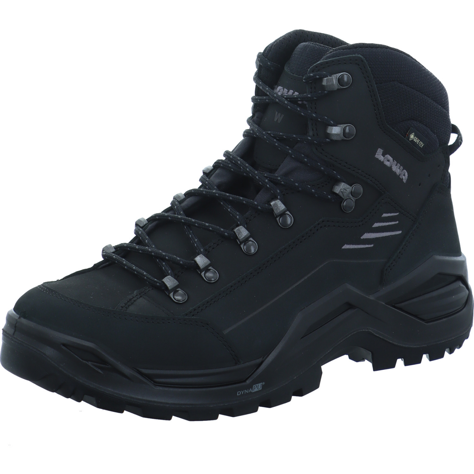 Herstellerinformation: Lowa Sportschuhe GmbH Hauptstrasse 19, 85305 Jetzendorf, DE info@lowa.de_____Der tiefschwarze Herren-Wanderstiefel Renegade EVO GTX MID W 311917/0998 von Lowa besteht aus Nubukleder und Textil. Durch die Gore-Tex Membran ist dieser zu 100% wasserdicht. Die Vibram Laufsohle überzeugt durch ihre Griffigkeit auf verschiedenen Untergründen, sowie ihre Abriebsfestigkeit.