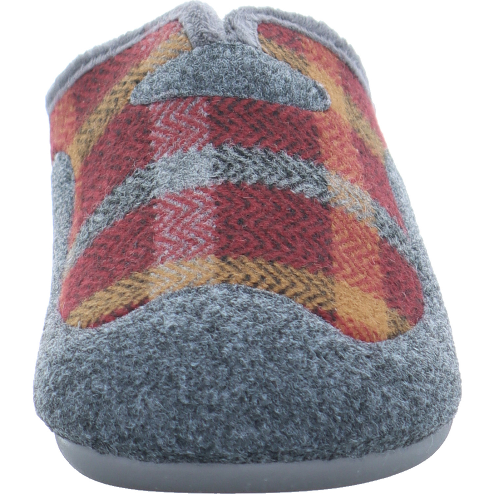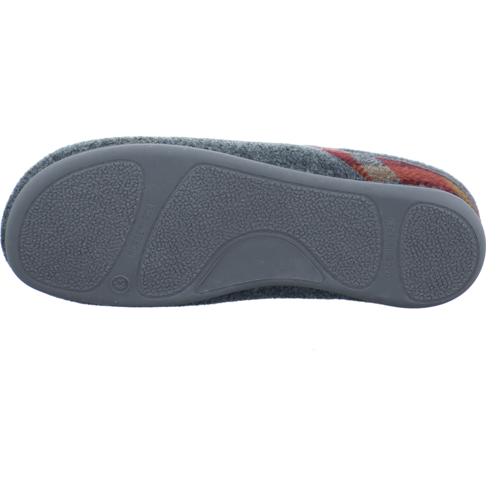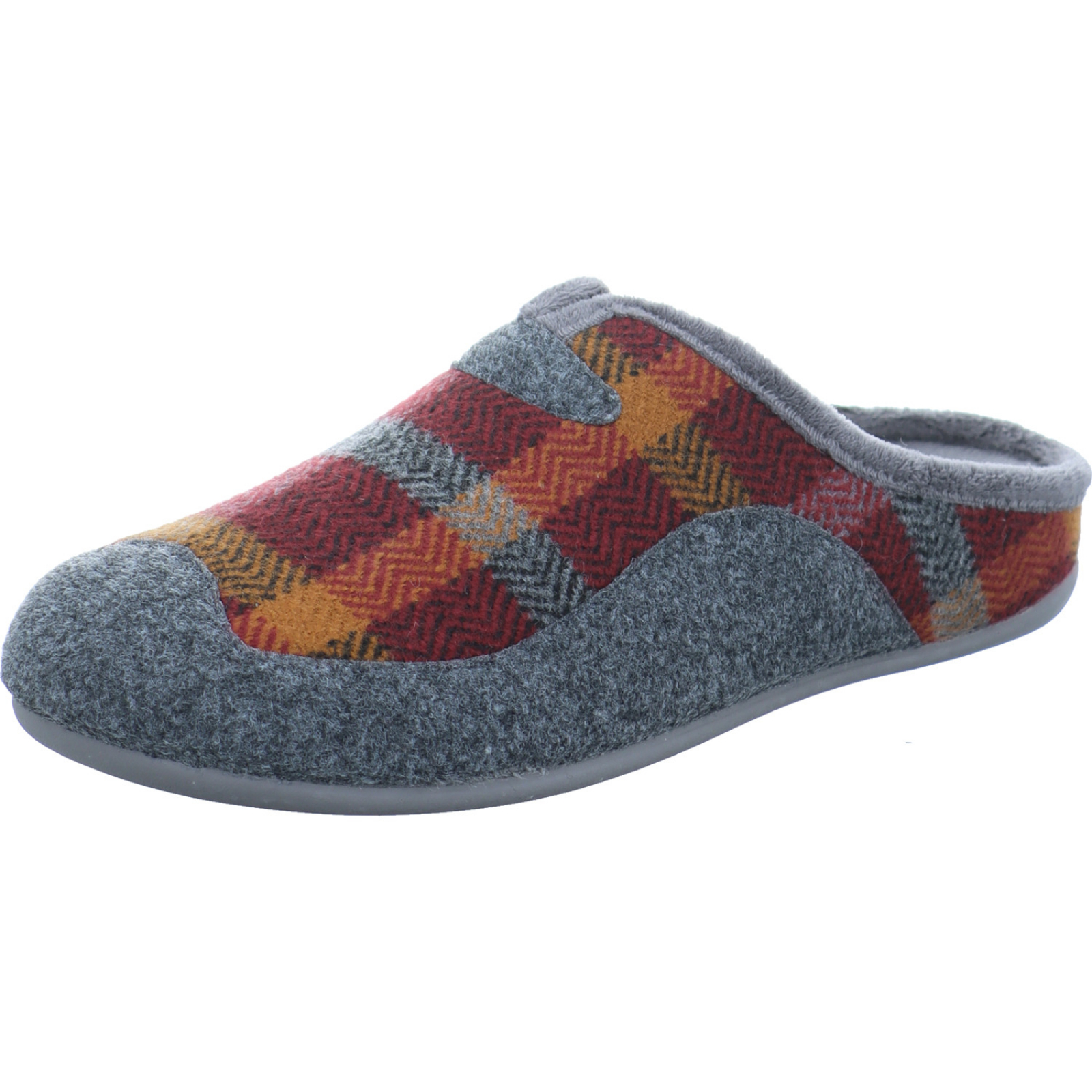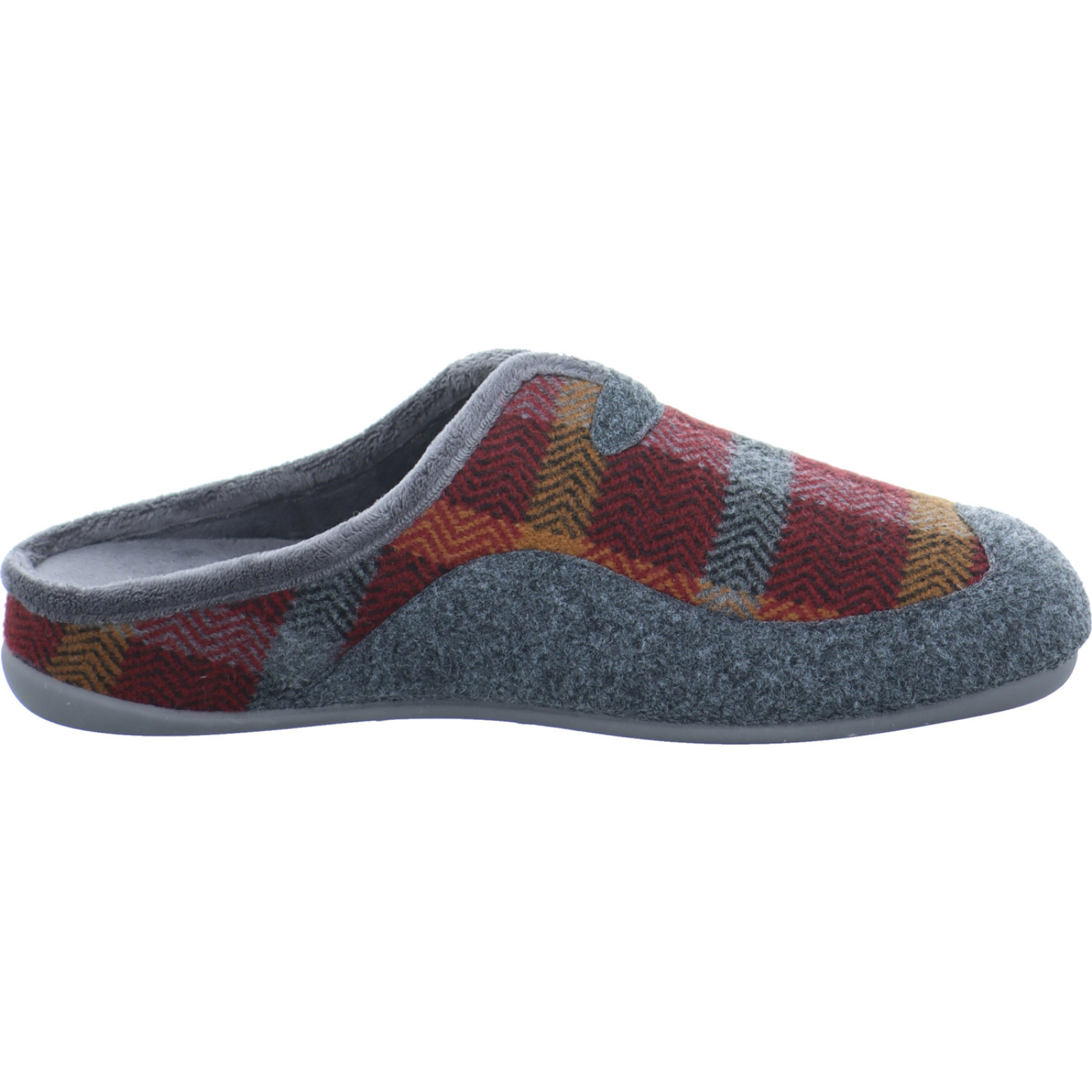 service@poelking-schuhe.de_____Der grau-rot-braune Herren-Hausschuh 220079-41 von Manitu besteht aus Textil und hat ein Wechselfußbett.