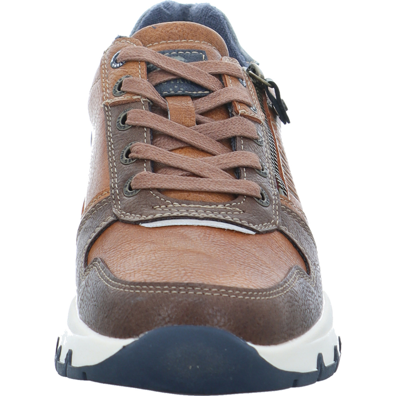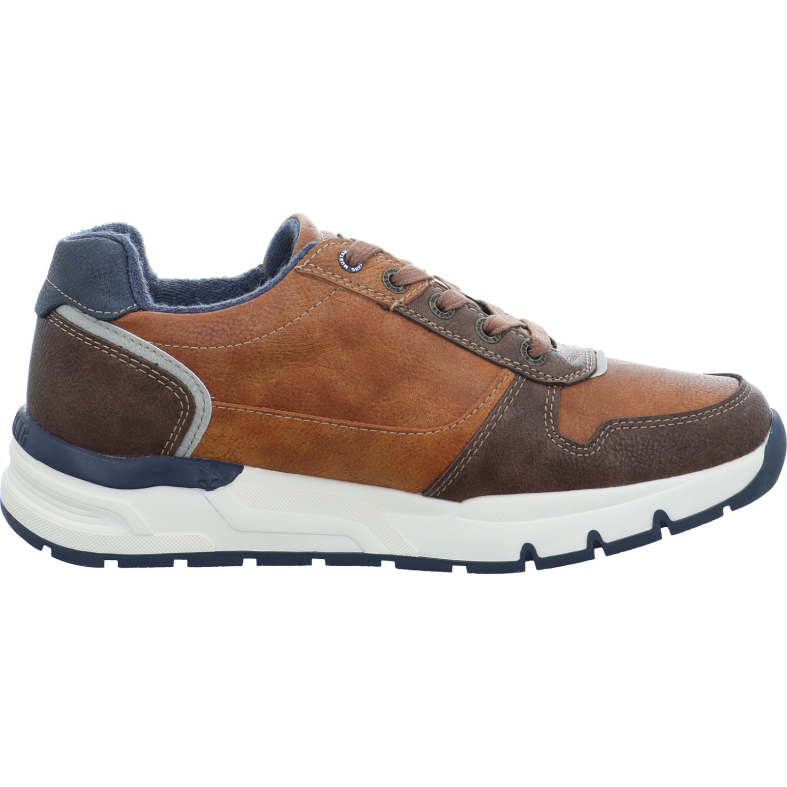 info@supremo-shoes.de_____Der mittelbraun-blaue Herren-Schnürhalbschuh 15M0051003/00205 von Mustang besteht aus High-Tech und hat ein komfortables Wechselfußbett.