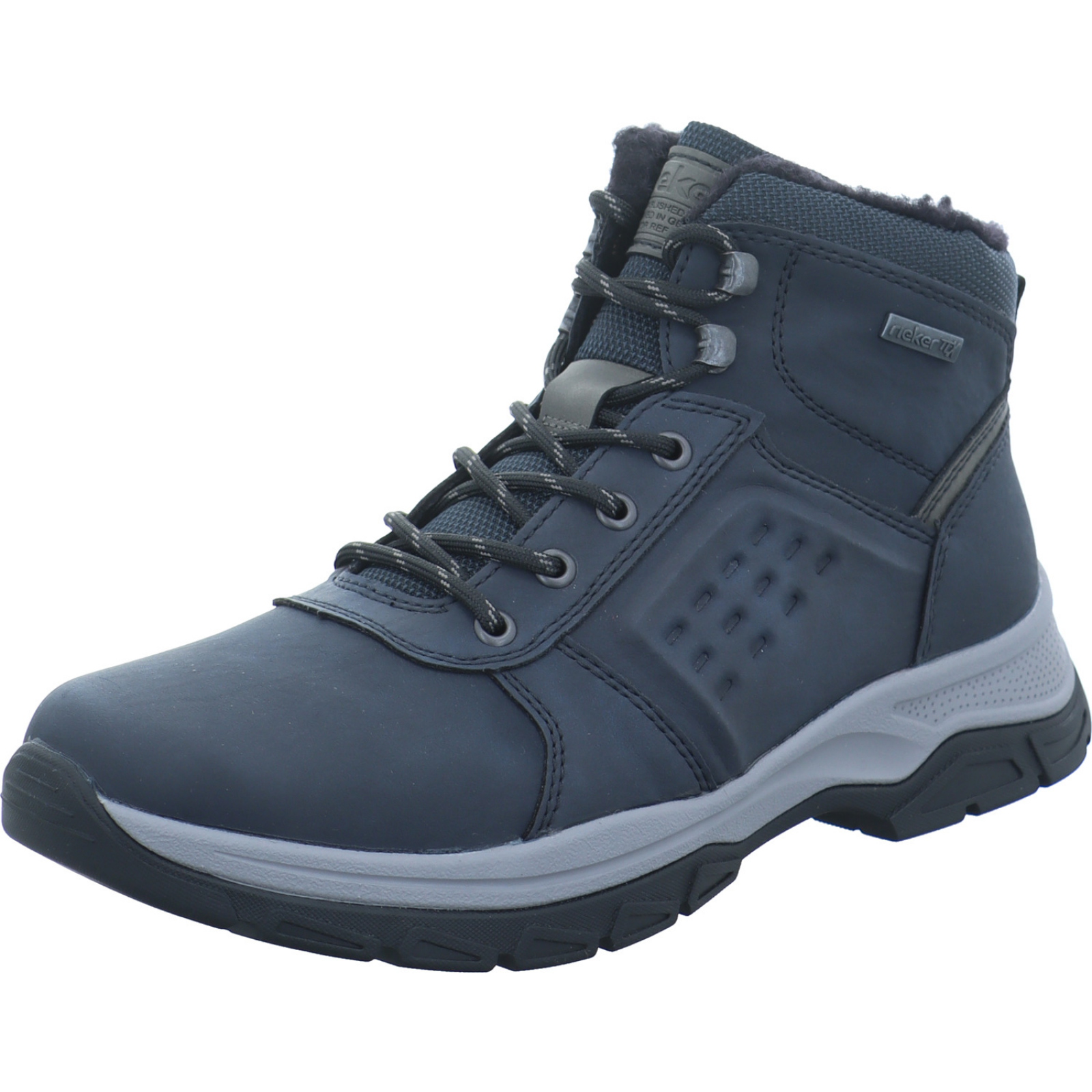 Herstellerinformation: Rieker Schuh GmbH Gänsäcker 31, 78532 Tuttlingen, DE service@rieker.com_____Der dunkelblaue Herren-Schnürboot 30201-14 von Rieker besteht aus High-Tech und Textil. Durch das Wechselfußbett ist dieses Modell ideal für lose Einlagen.