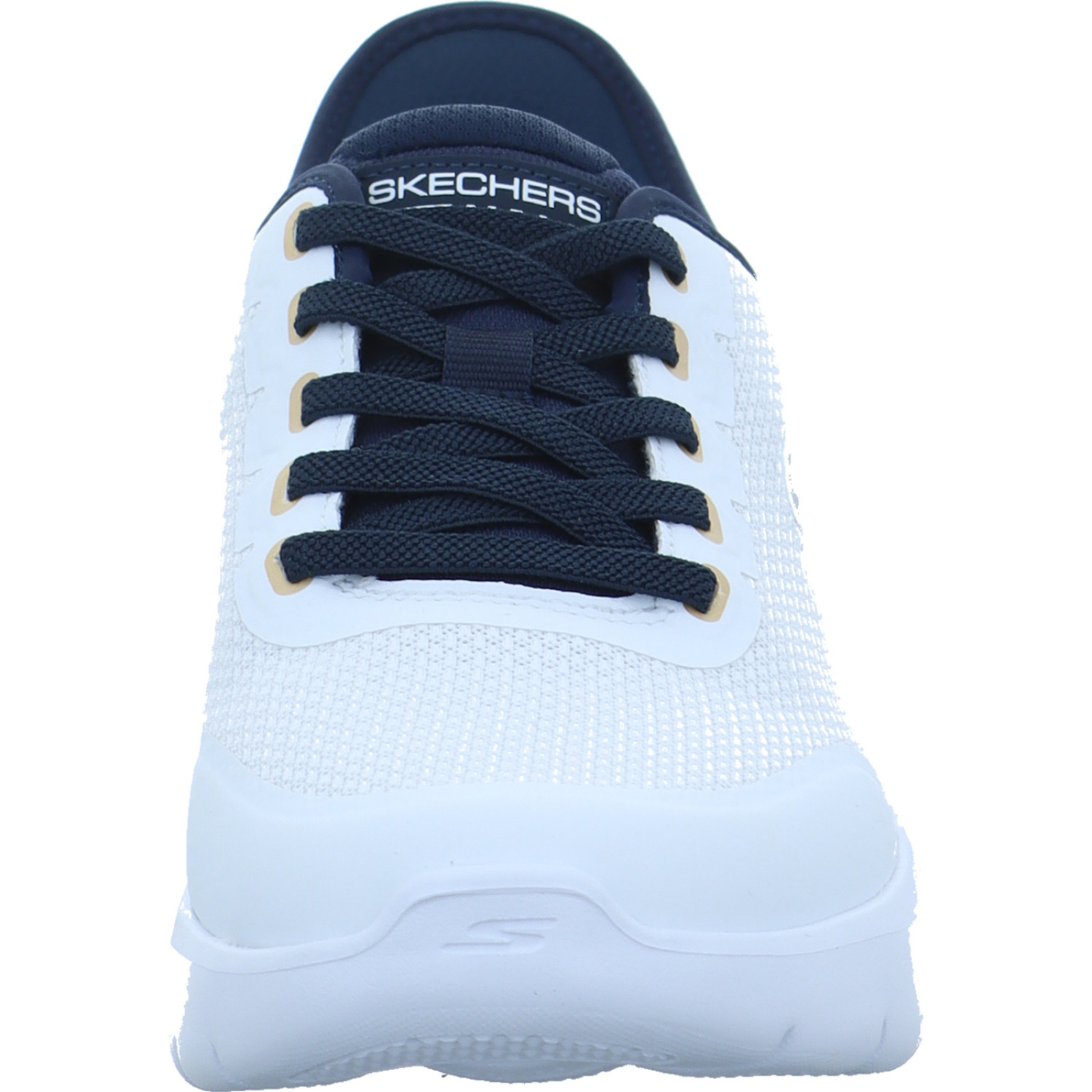 kundenservice@eu.skechers.com_____Der weiß-dunkelblaue Herren-Sportschuh Go Walk Flex-Netro 216332 WNV von Skechers besteht aus Mesh und High-Tech.
