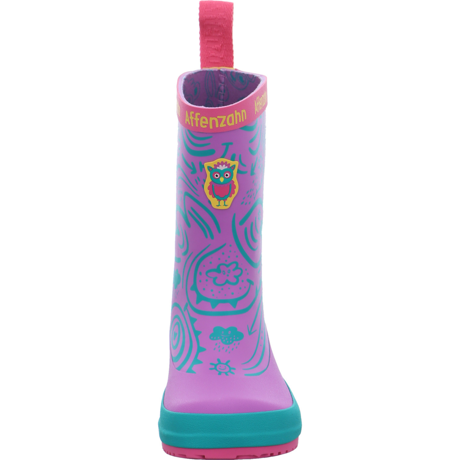 Herstellerinformation: Affenzahn FOND OF GmbH Vitalisstraße 67, 50827 Köln, DE info@affenzahn.com_____Der lila-grün-pinke Mädchen-Gummistiefel Plashy Owl 01638-40147-710 von Affenzahn besteht aus Gummi.