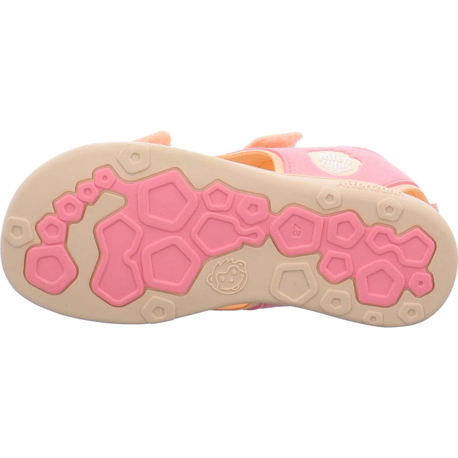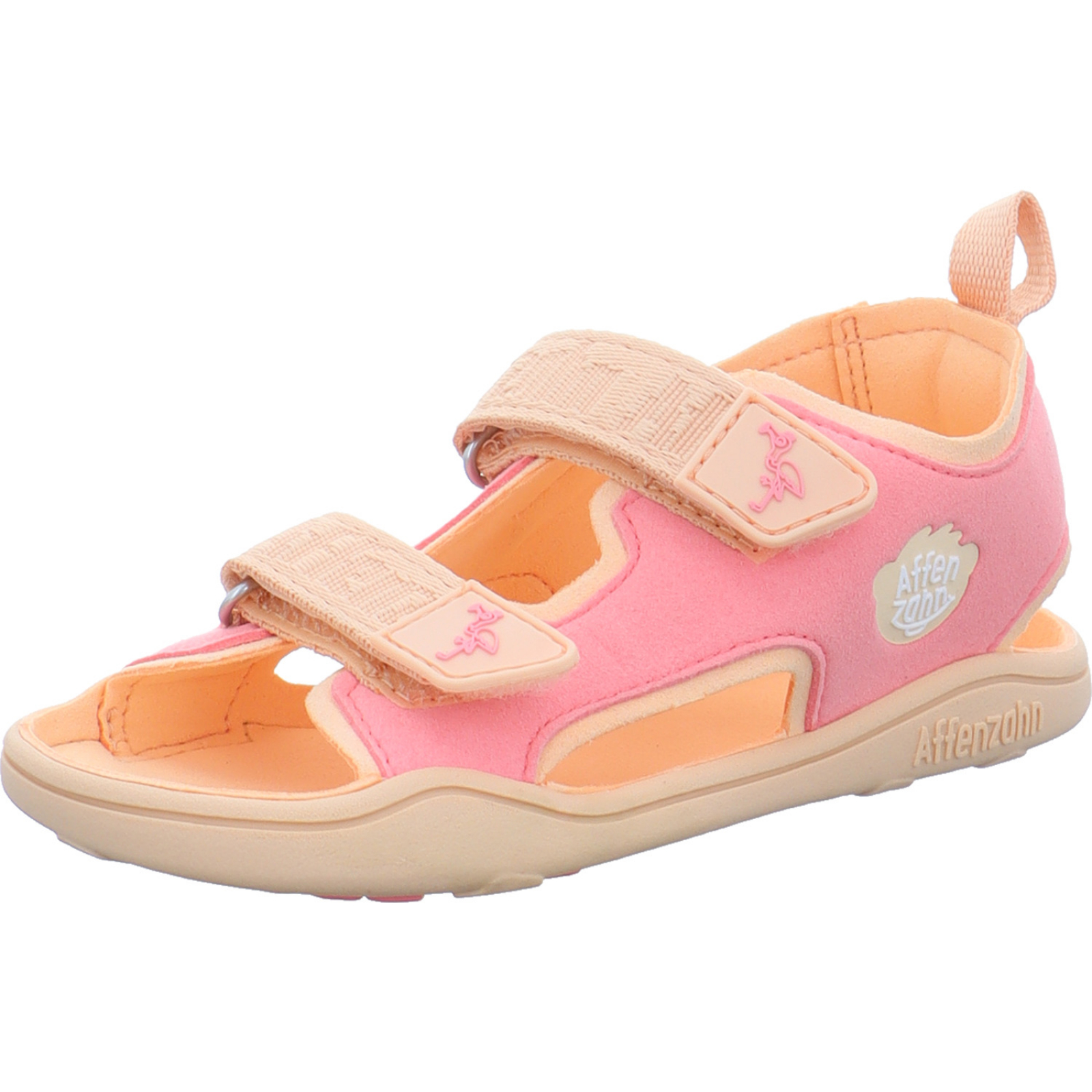 Herstellerinformation: Affenzahn FOND OF GmbH Vitalisstraße 67, 50827 Köln, DE info@affenzahn.com_____Die orange-korall-farbene Mädchen-Sandalette Airy Flamingo 00392-40126-730 von Affenzahn besteht aus Microvelours und Textil.