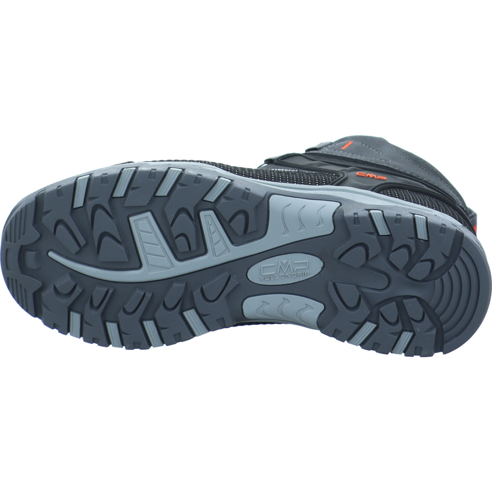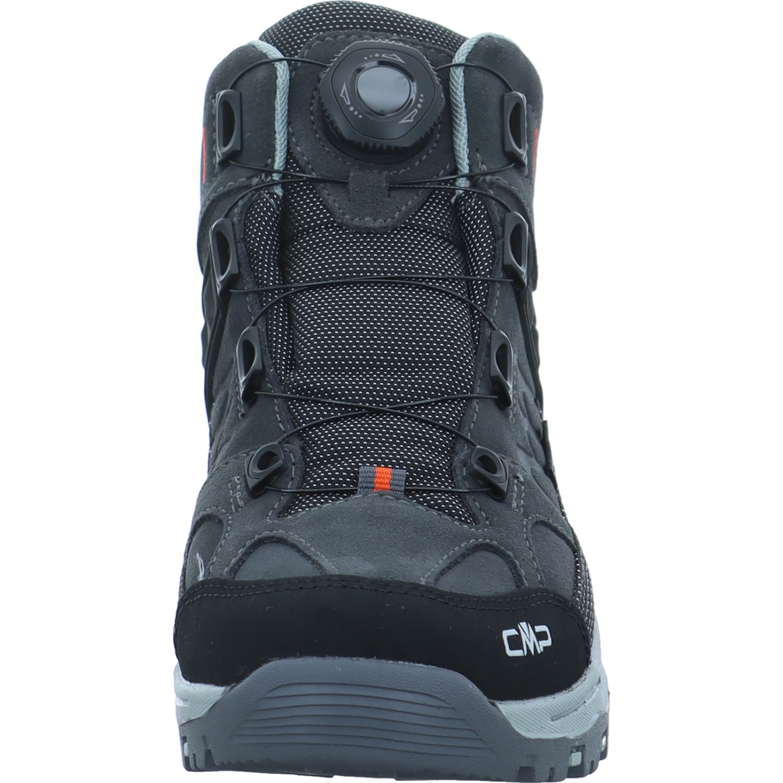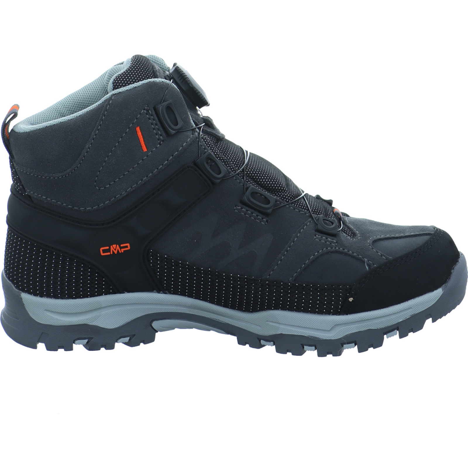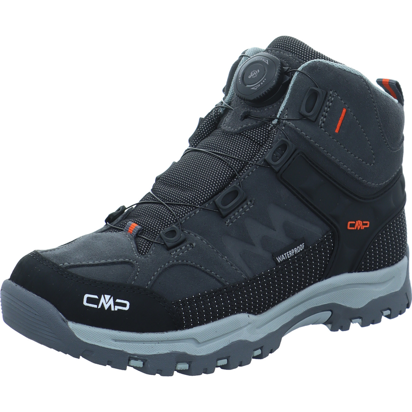 info.de@campagnolo.it_____Der grau-schwarz-orangene Jungen-Wanderstiefel Kids Kiruna Mid Fitgo 3Q56784-45UV von CMP besteht aus Veloursleder, Textil und High-Tech. Der Fitgo-Drehverschlusse ermöglicht ein praktisches und schnelles Schließen und Öffnen des Schuhs.
