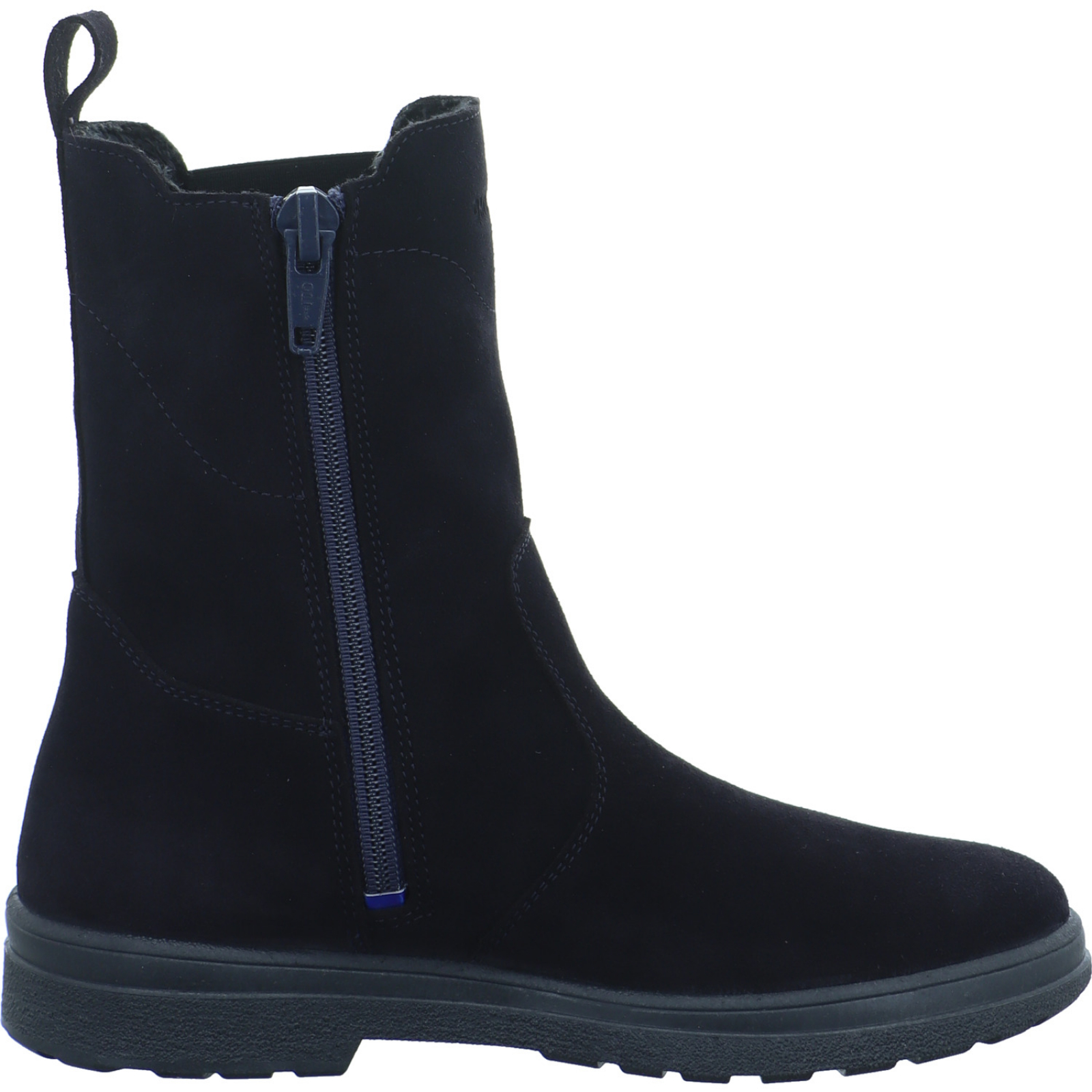 Herstellerinformation: Däumling Kinderschuhfabrik GmbH Fabrikstraße 8, 76891 Bruchweiler-Bärenbach, DE shop@daeumling.de_____Der dunkelblaue Mädchen-Stiefel Lea 211041S-01/47 von Däumling besteht aus Veloursleder und einem seitlichen Stretch-Gummi.