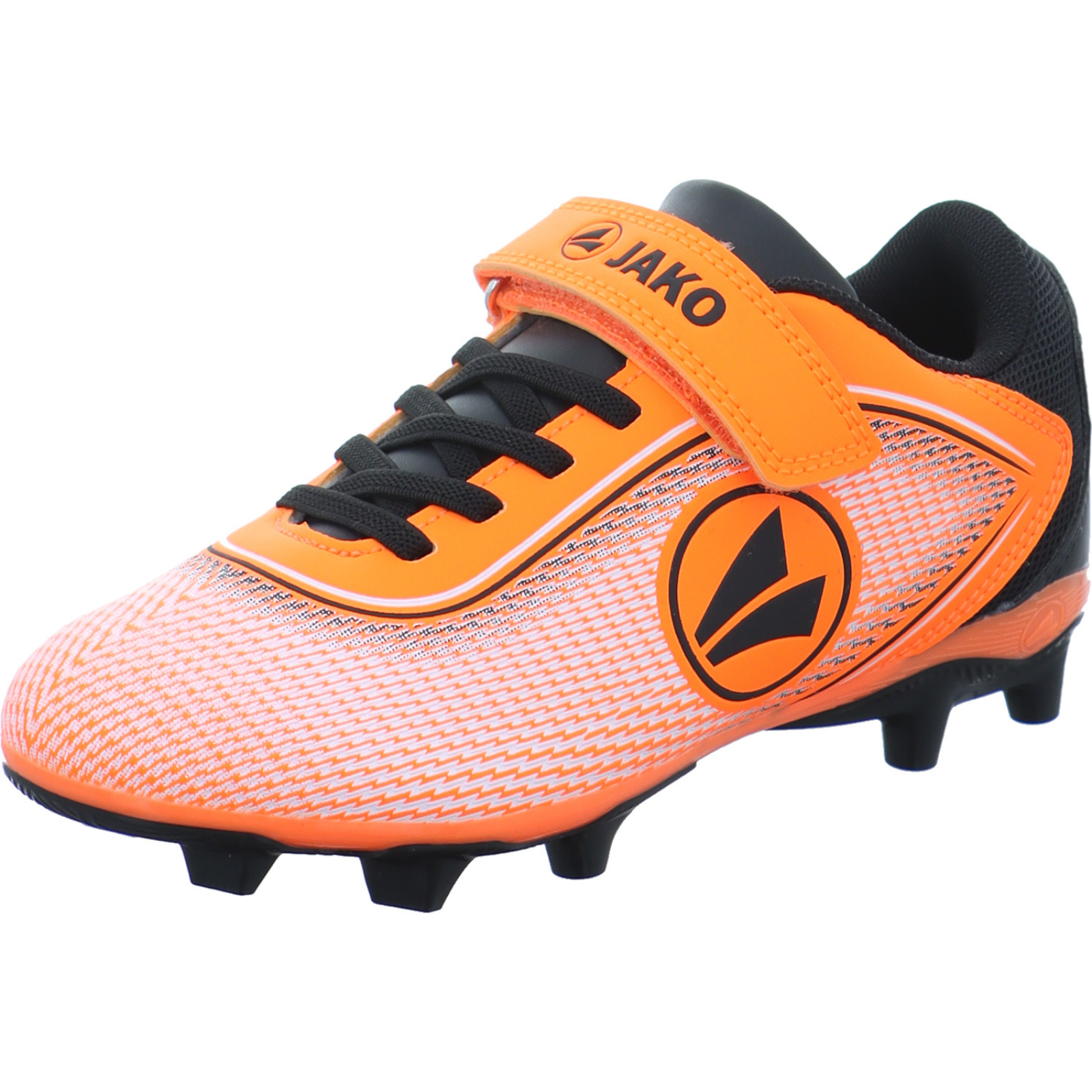 Herstellerinformation: JAKO AG Amtstraße 82, 74673 Mulfingen, DE service@jako.com_____Perfekt für das große Fußballspiel ist der orange-schwarze Jungen-Fußballschuh J-SFG Course EV 310125-7950 von Jako bestehend aus High-Tech und Mesh.