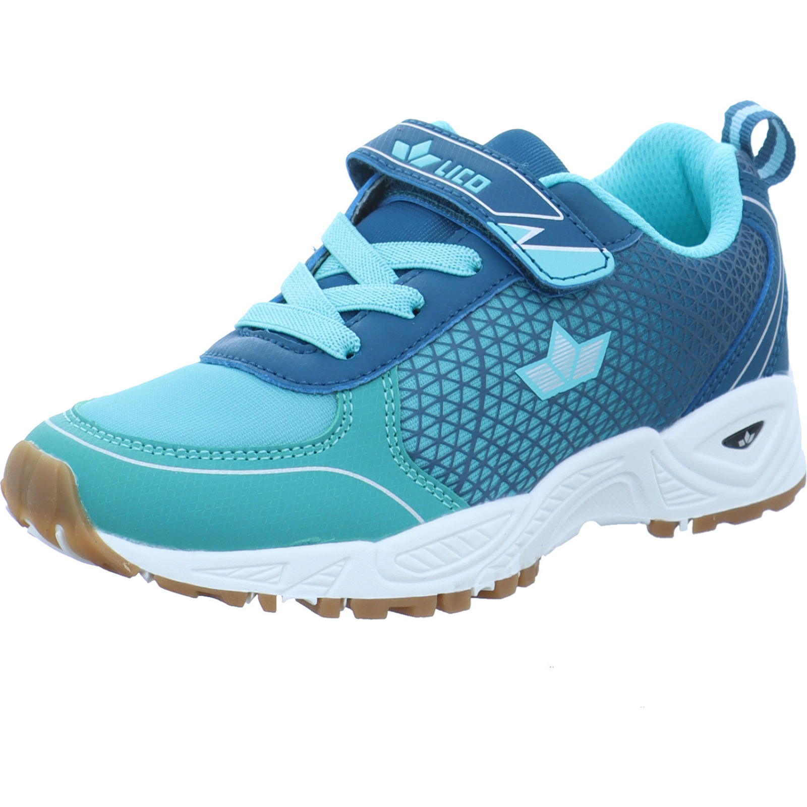 info@geka-sport.de_____Der türkis-petrol-farbene Mädchen-Sportschuh Noa VS 366411 von Lico besteht aus Textil und High-Tech.