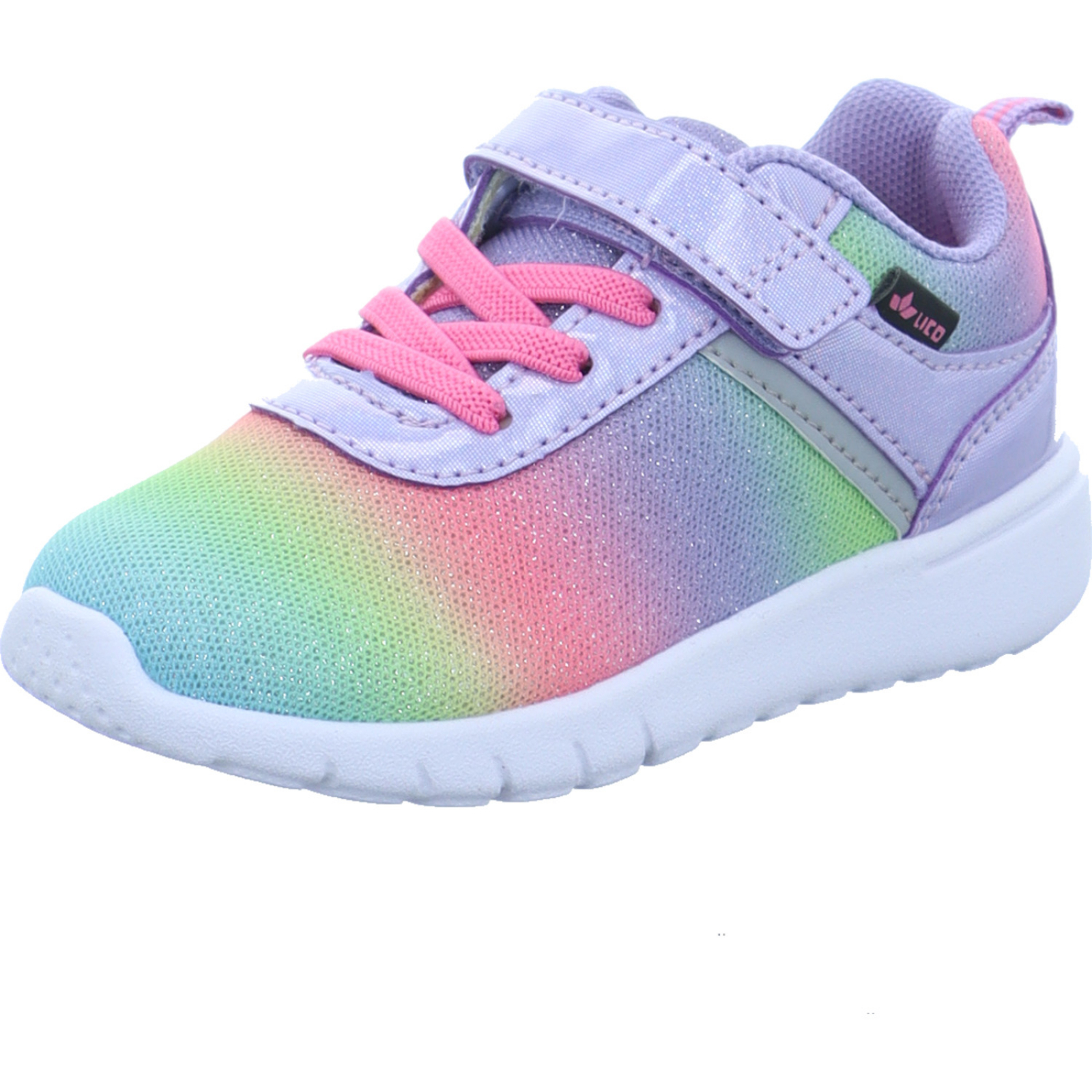 info@geka-sport.de_____Der multifarbene Mädchen-Sportschuh Cakes VS 600130 von Lico besteht aus Mesh und High-Tech mit Glitzer.