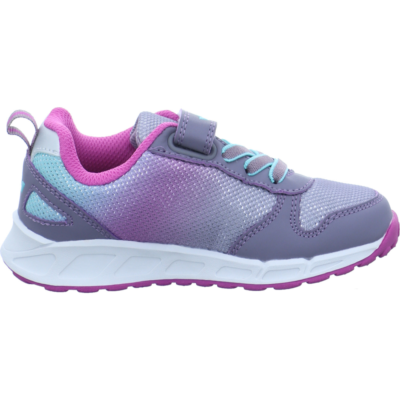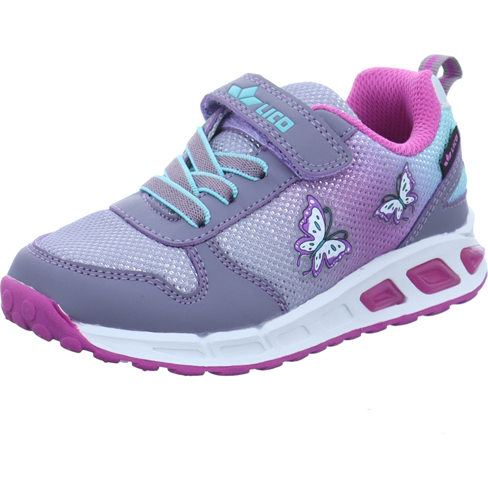 info@geka-sport.de_____Ein absolutes Highlight des lila-türkis-farbenen Mädchen-Sportschuhs Blinky Girl 300322 bestehend aus Textil und High-Tech sind die Blinklichter.