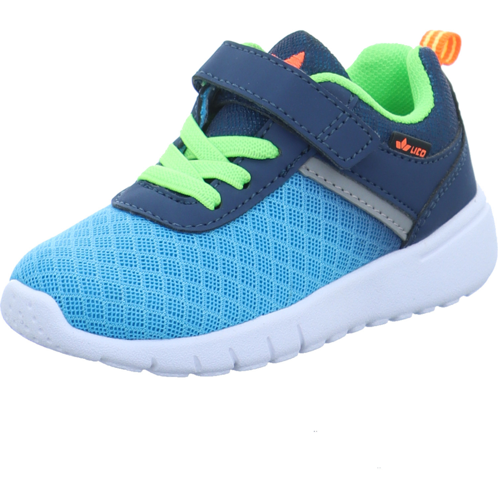 Herstellerinformation: Lico Geka-Sport GmbH Weinbergstrasse 10, 96328 Küps, DE info@geka-sport.de_____Der blau-grüne-orangene Jungen-Sportschuh Cakes VS 600131 von Lico besteht aus Mesh und High-Tech.
