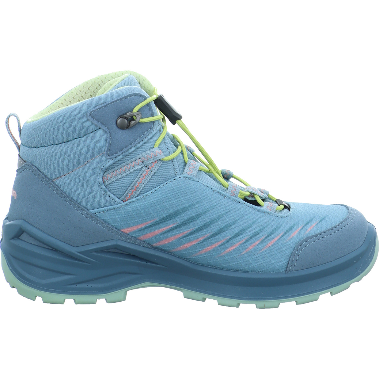 _____Der artik-mint-farbene Mädchen-Wanderstiefel Zirrox II GTX Mid JR 641129-9056 von Lowa besteht aus Textil und Microvelours. Durch die Gore-Tex Membran ist dieser atmungsaktiv und zu 100% wasserdicht.