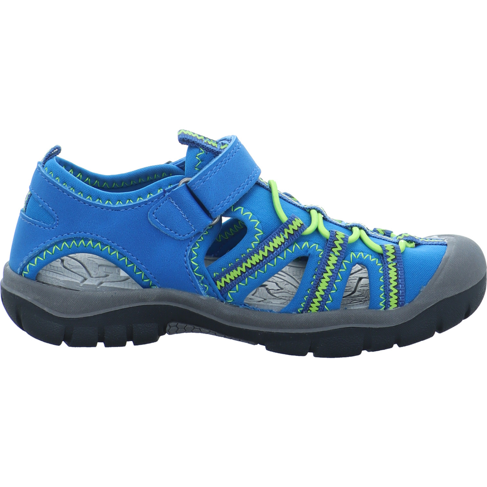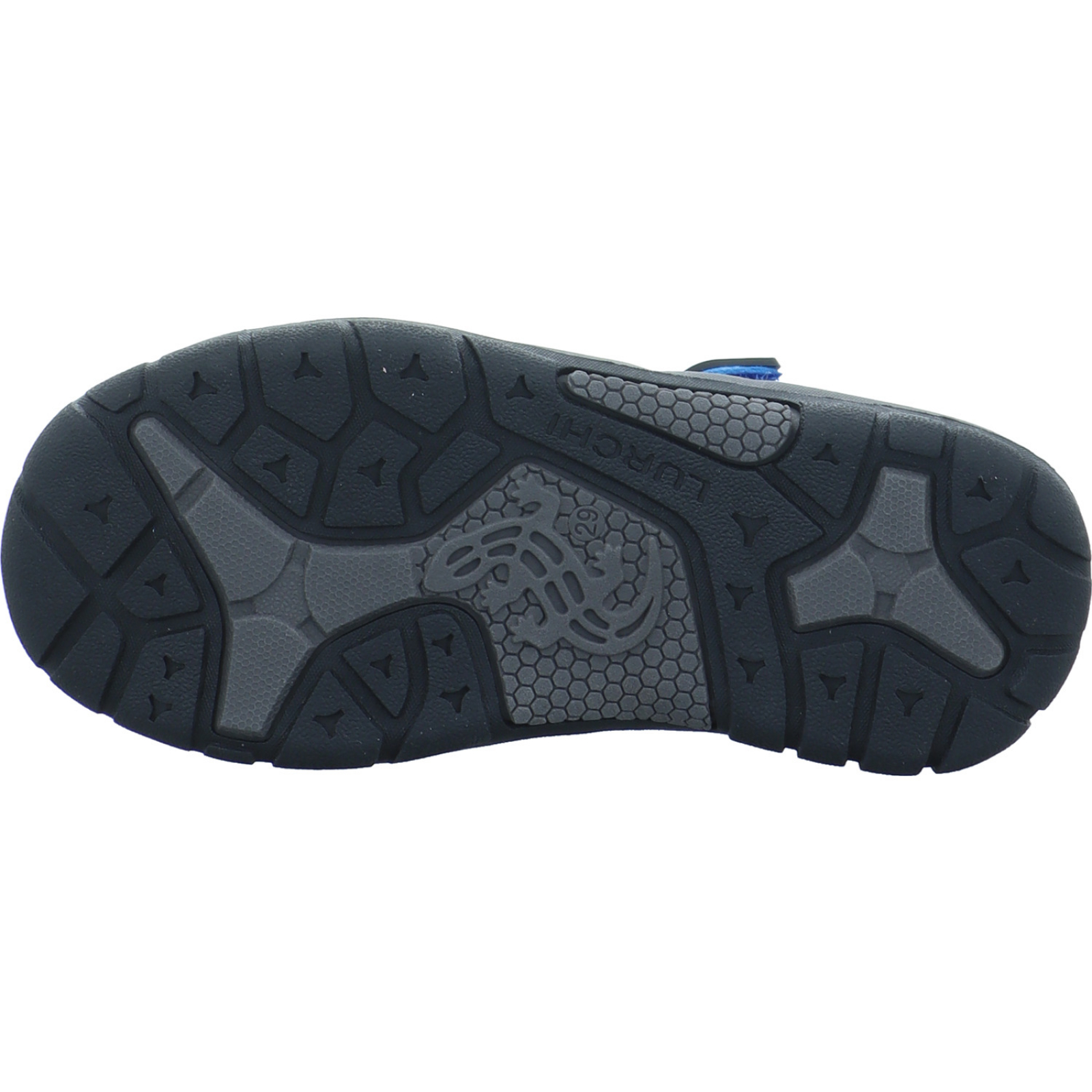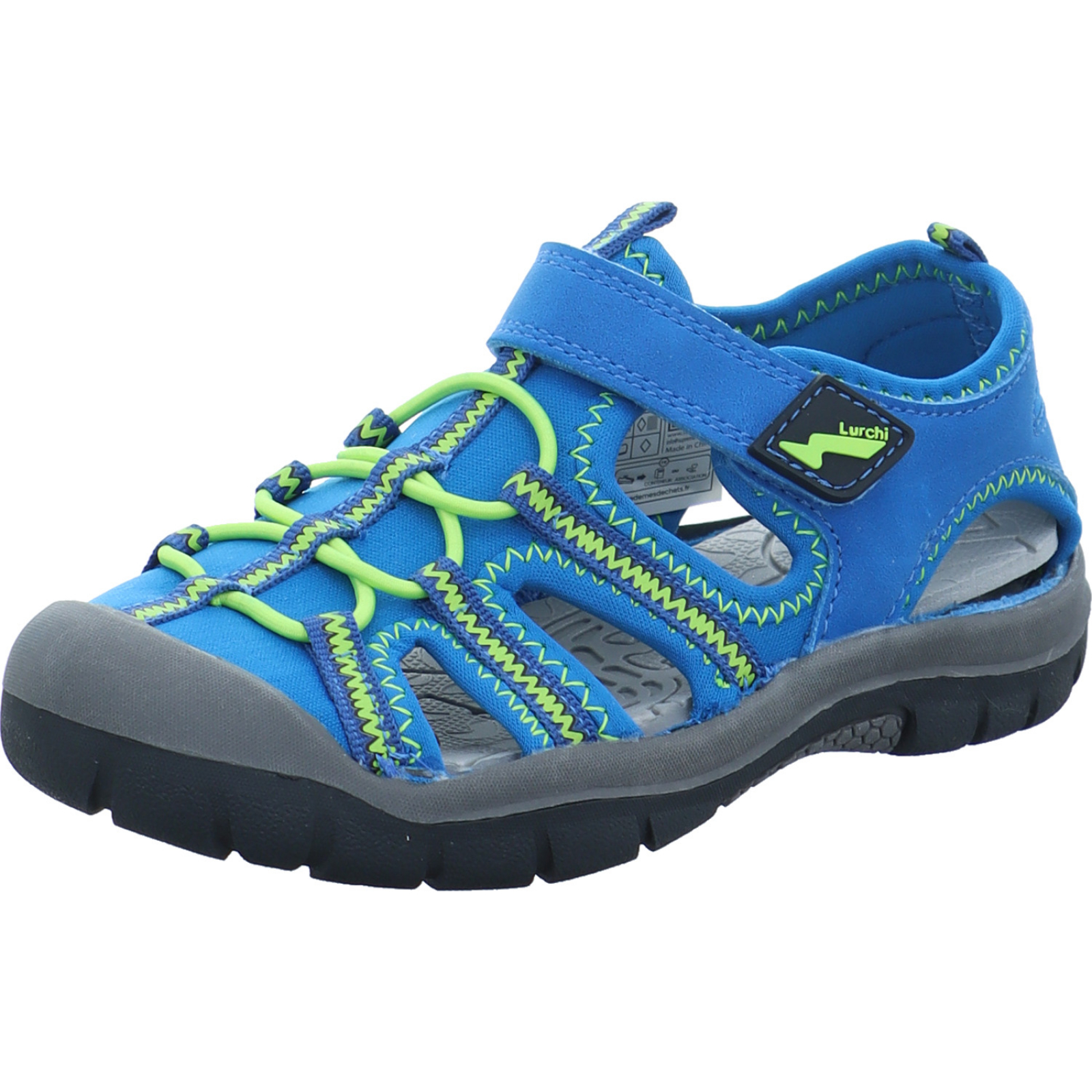 Herstellerinformation: Lurchi Supremo Shoes & Boots GmbH Blocksbergstr. 174, 66955 Pirmasens, DE info@supremo-shoes.de_____Die geschlossene mittelblau-grüne Jungen-Sandale Florin 95L0053003-00336 von Lurchi besteht aus High-Tech und Textil.