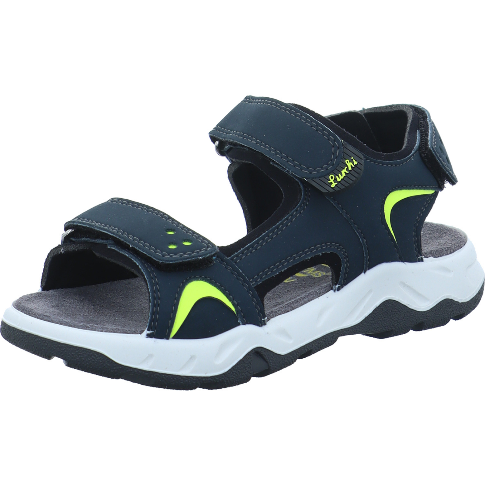 info@supremo-shoes.de_____Die dunkelblau-gelbe Jungen-Sandale Oweno 74L8193002-00003 von Lurchi besteht aus High-Tech. Gearbeitet wurde dieses Modell in der WMS Weite Mittel.
