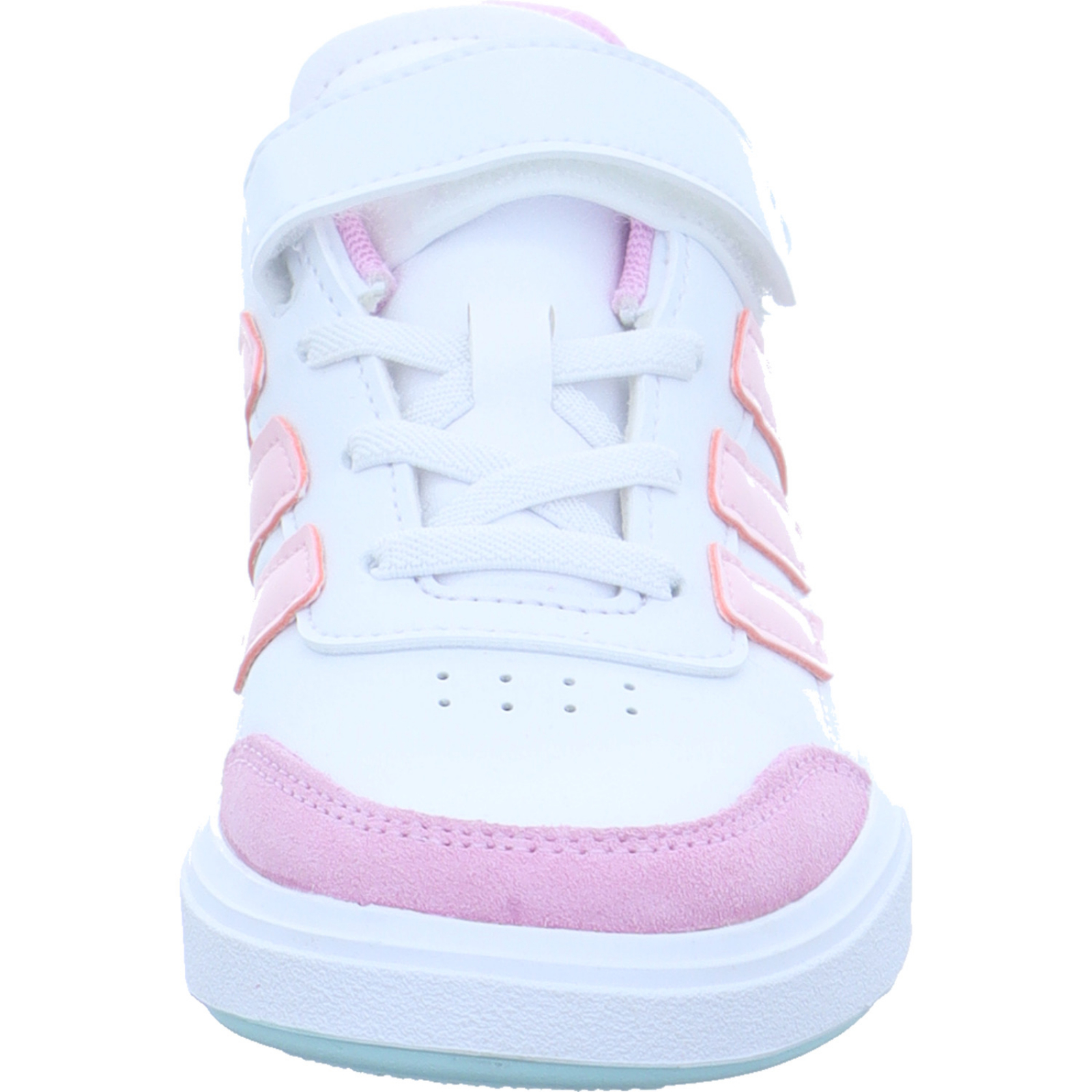 Herstellerinformation: Adidas AG Adi-Dassler-Straße 1, 91074 Herzogenaurach, DE serviceinfo@onlineshop.adidas.com _____Der weiß-rosa-farbene Mädchen-Sportschuh Courtblock EL C JH8570 von Adidas besteht aus High-Tech und Microvelours.
