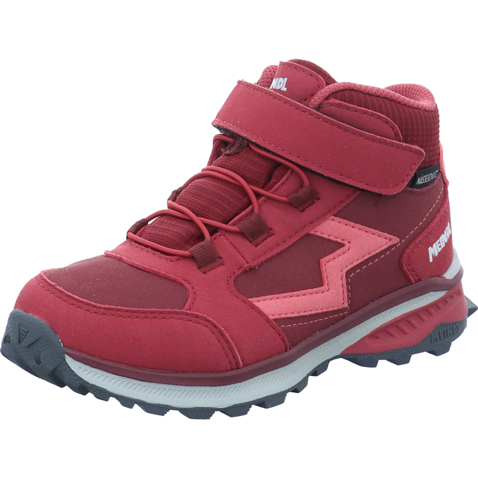 shoes@meindl.de_____Der dunkelrote Mädchen-Wanderstiefel Otago Junior Mid 2143-081 von Meindl besteht aus Textil und hat einen Nässeschutz. Die Meindl Air Active Technologie sorgt für eine optimale Dämpfung.
