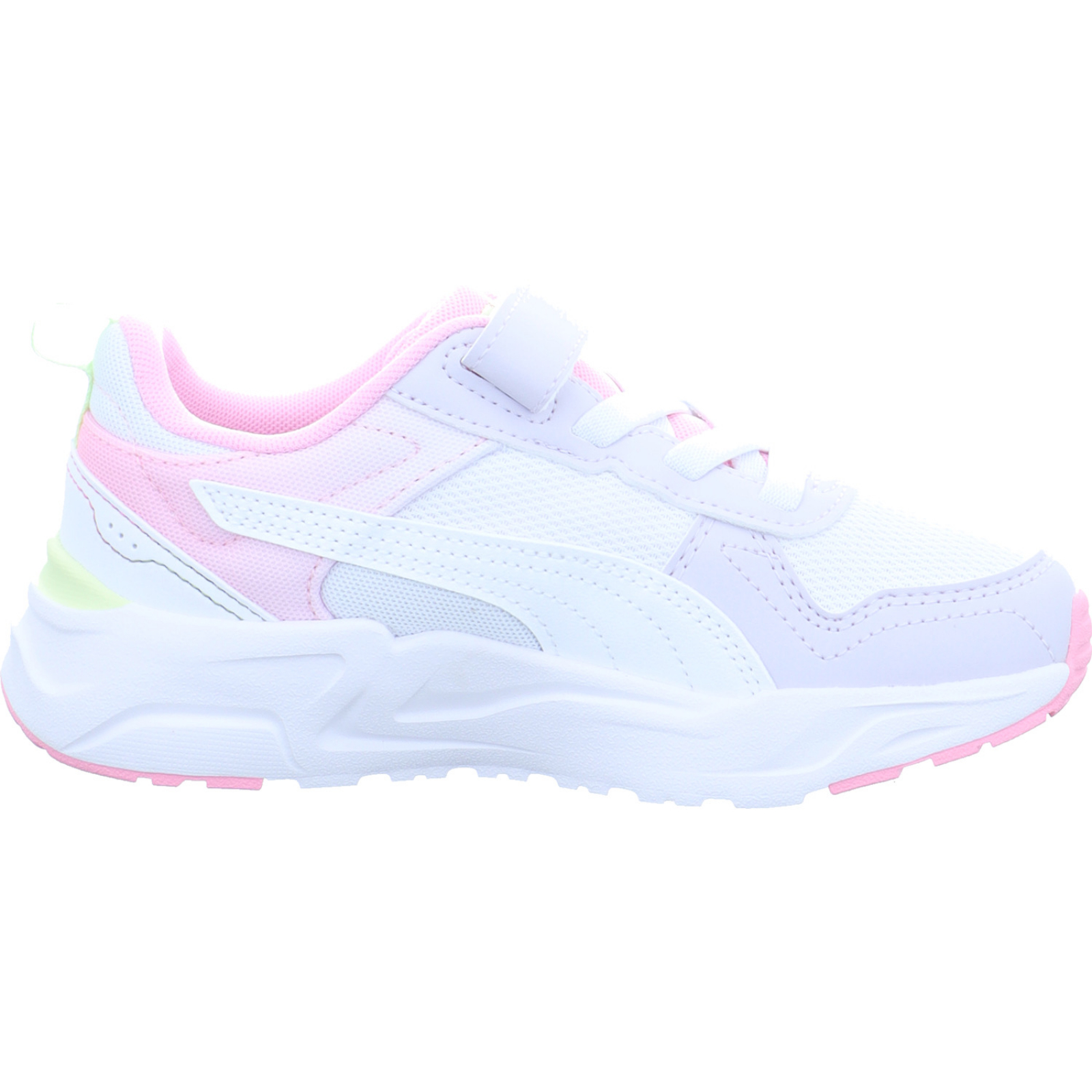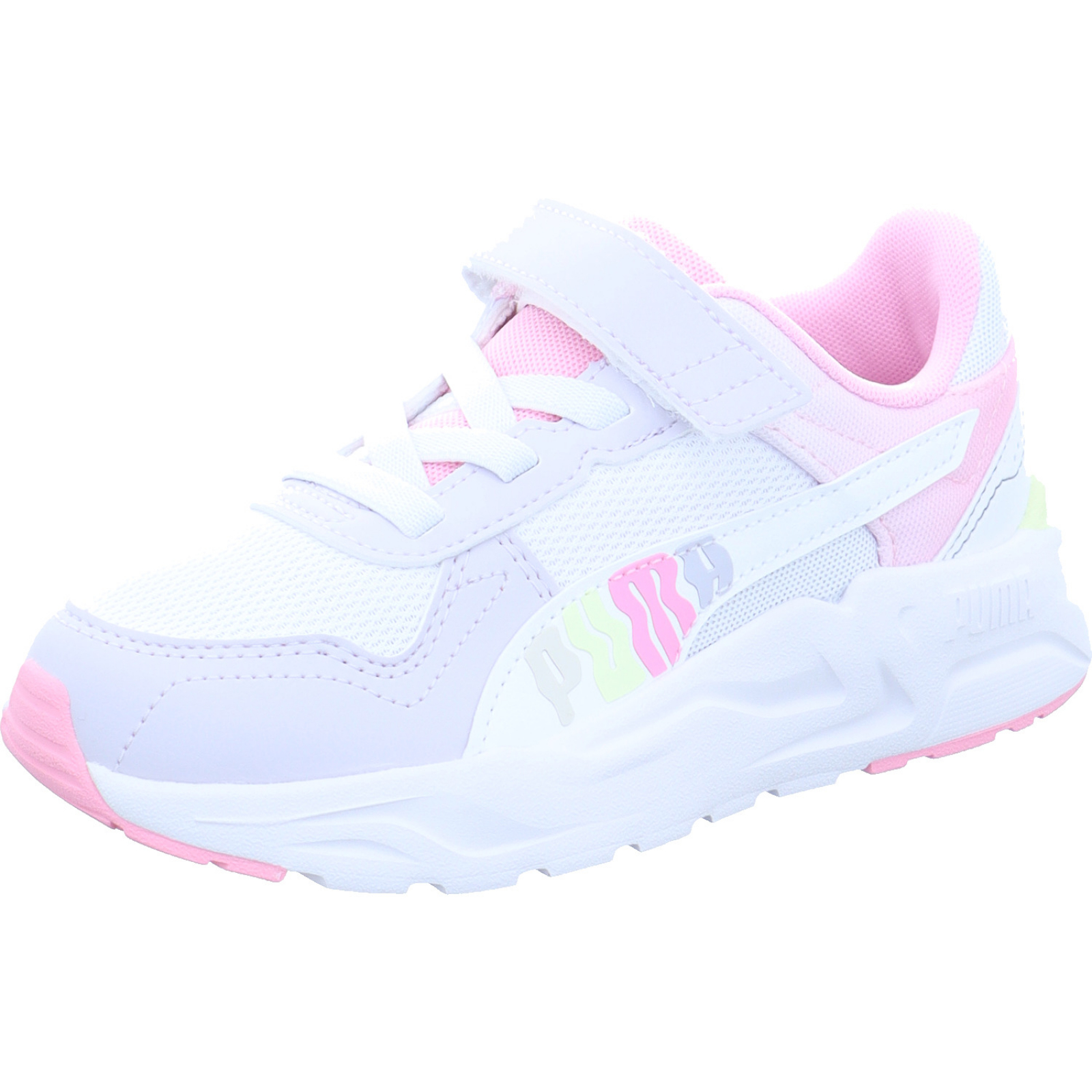 service@puma.com_____Dieser weiß-lila-rosa-gelbe Mädchen-Sportschuh Trinity 2 LT Come On AC+PS von Puma besteht aus Mesh, Textil und High-Tech. Dank der weichen, herausnehmbaren Innensohle bietet dieser Schuh einen optimalen Tragekomfort.
