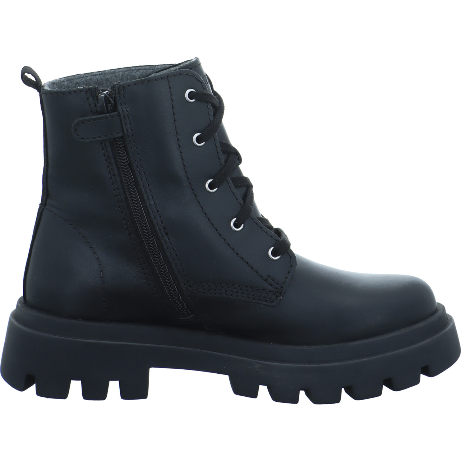 shop@richter.at_____Der schwarze Mädchen-Schnürbootie 4450-2231-9900 von Richter besteht aus Glattleder und ist komplett wasserdicht.