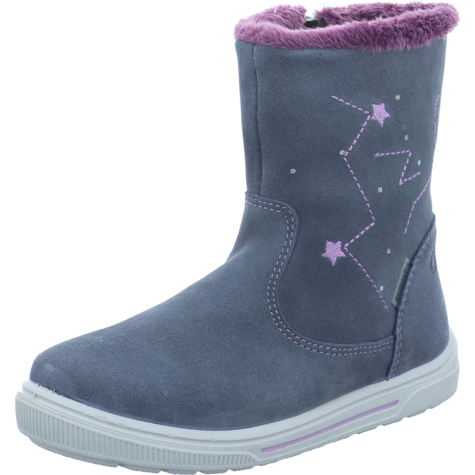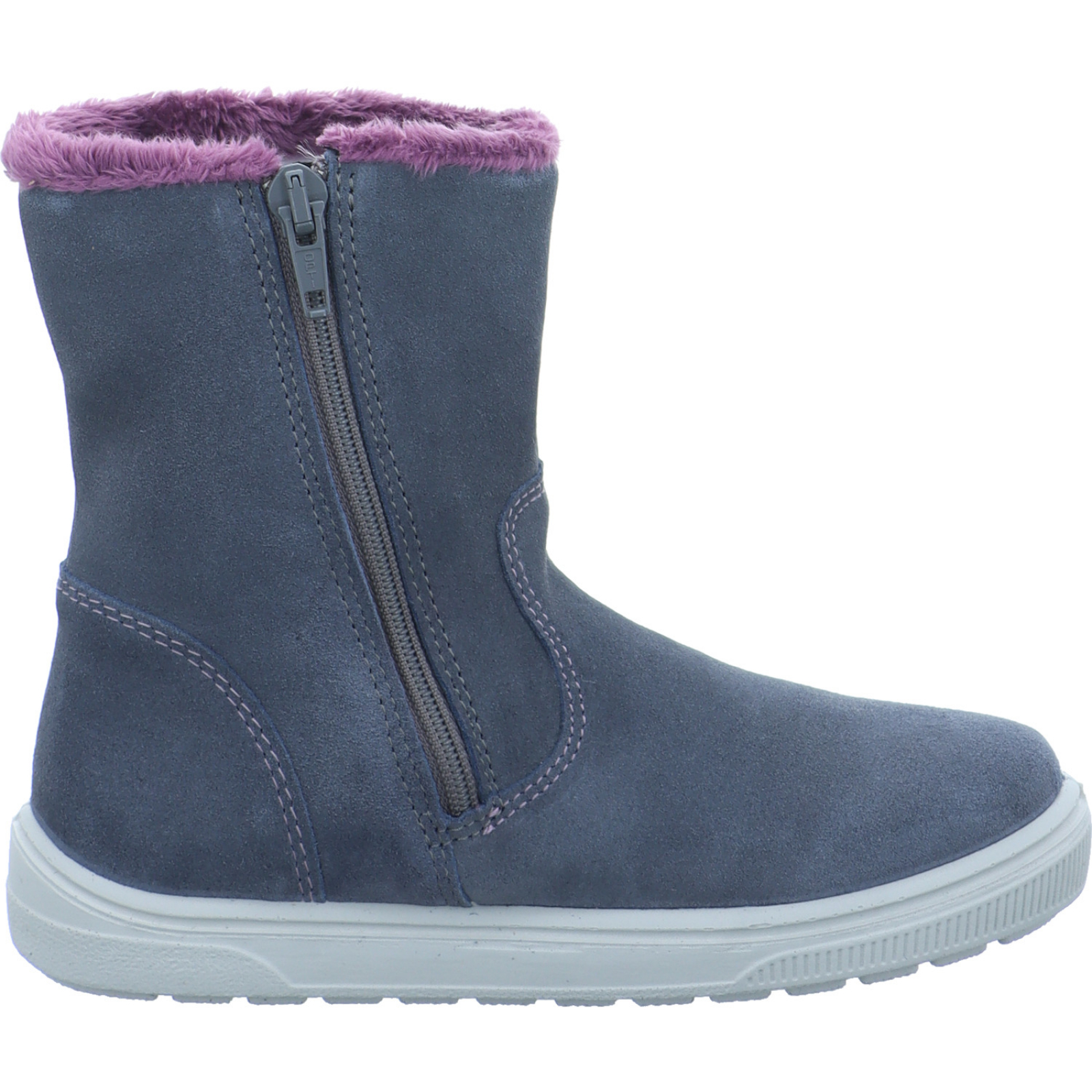 Herstellerinformation: Ricosta Schuhfabriken GmbH Dürrheimer Straße 43, 78166 Donaueschingen, DE shop@ricosta.de_____Der mittelgrau-lila-farbene Mädchen-Stiefel Leja 50 7304402/140 von Ricosta besteht aus Veloursleder und ist komplett wasserdicht.