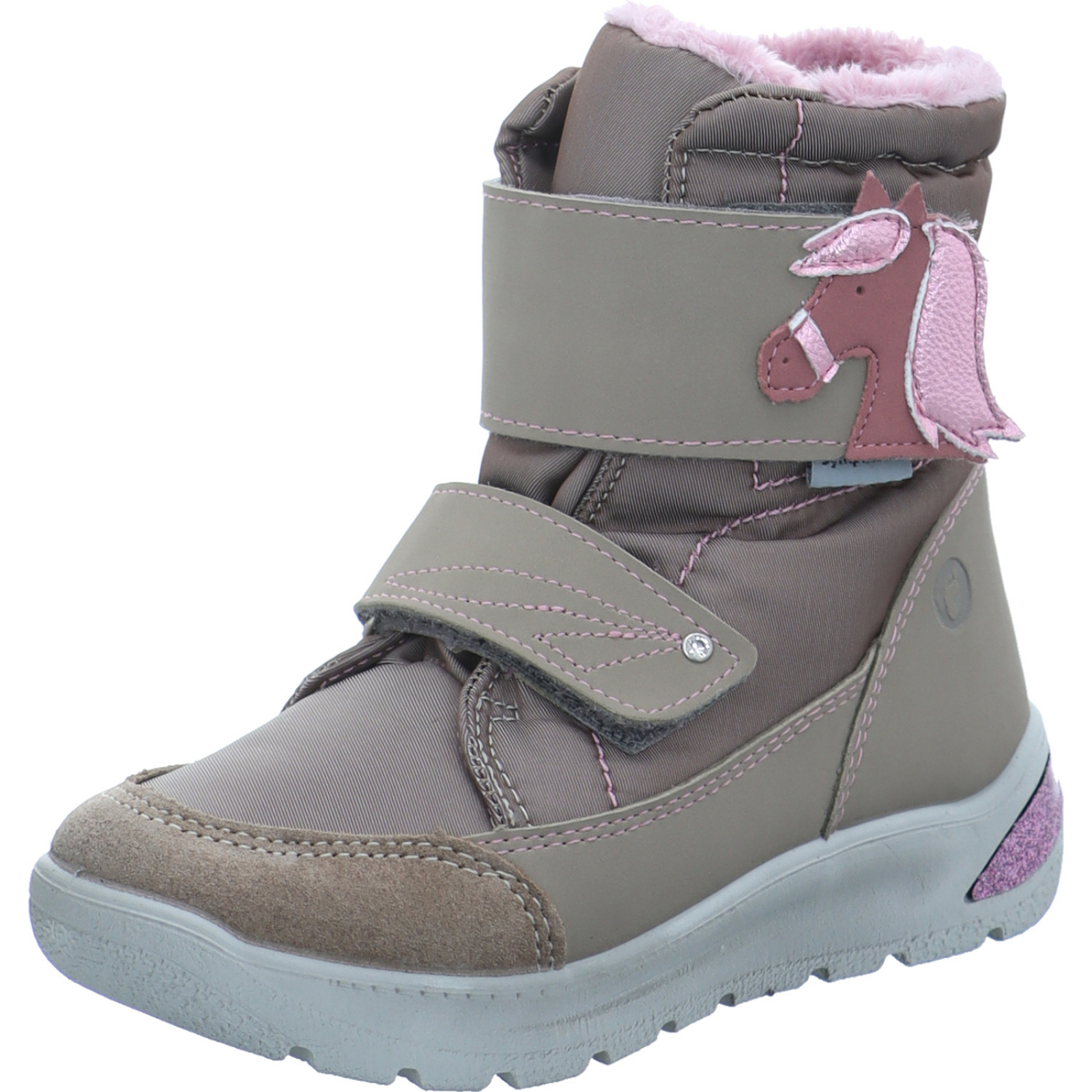 Herstellerinformation: Ricosta Schuhfabriken GmbH Dürrheimer Straße 43, 78166 Donaueschingen, DE shop@ricosta.de_____Der beige-rosa-farbene Mädchen-Klettbootie Garei 50 8901002/650 von Ricosta besteht aus Textil und Veloursleder.