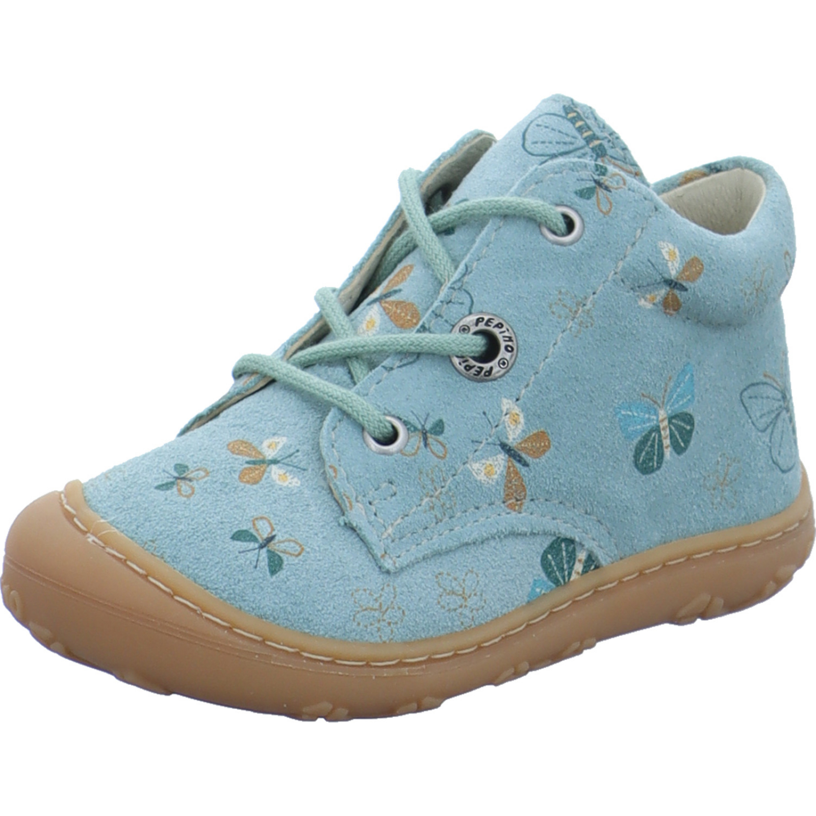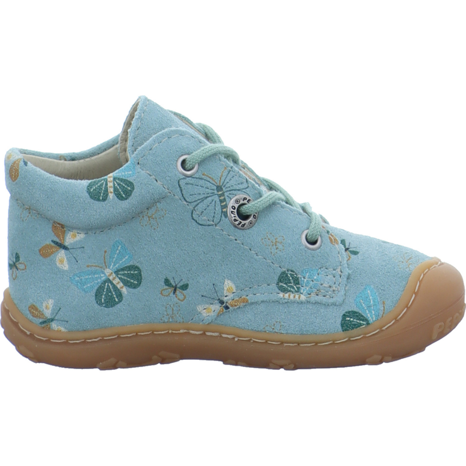 shop@ricosta.de_____Der mint-farbene Mädchen-Lauflernschuh Dots 50 1200502/111 von Pepino by Ricosta besteht aus Veloursleder.