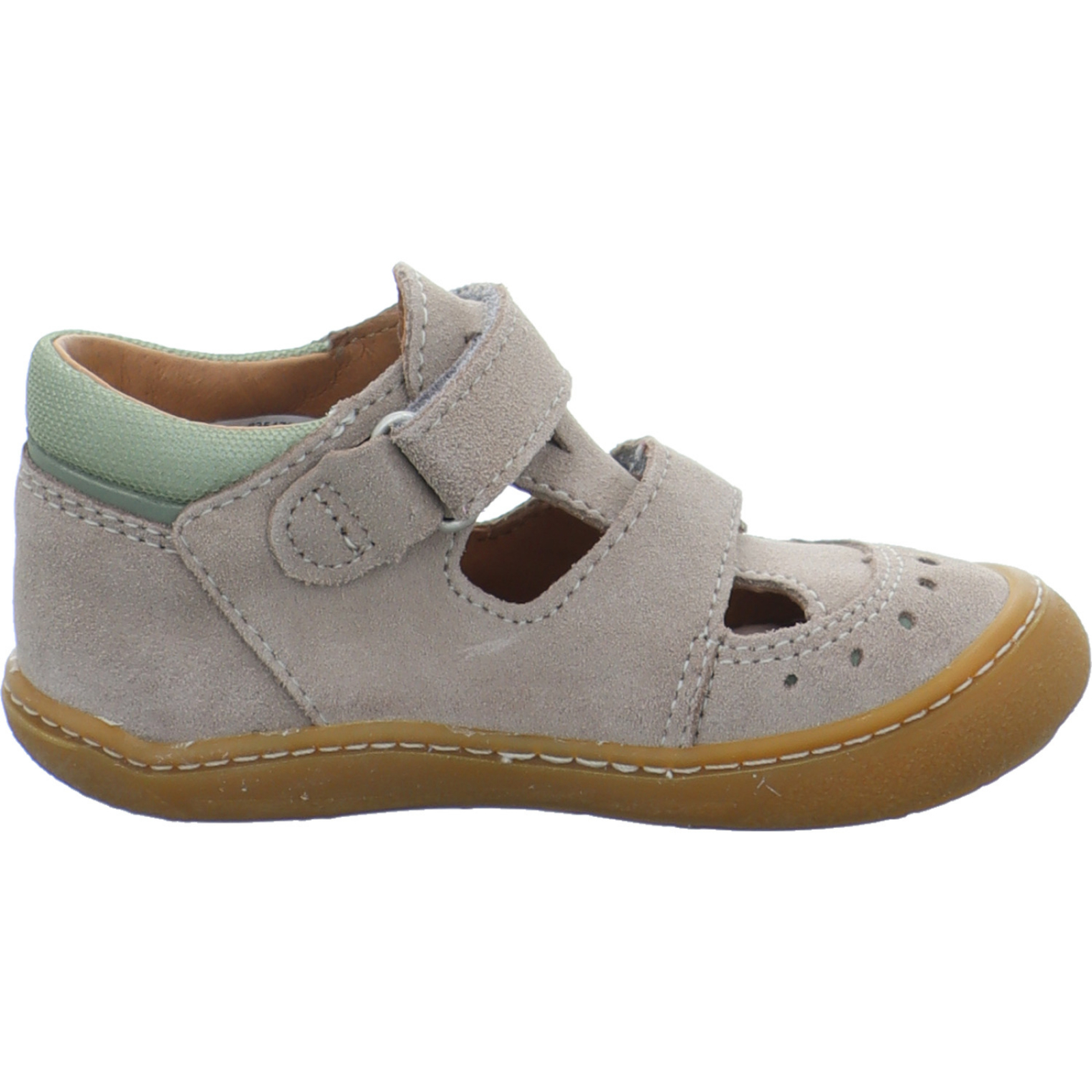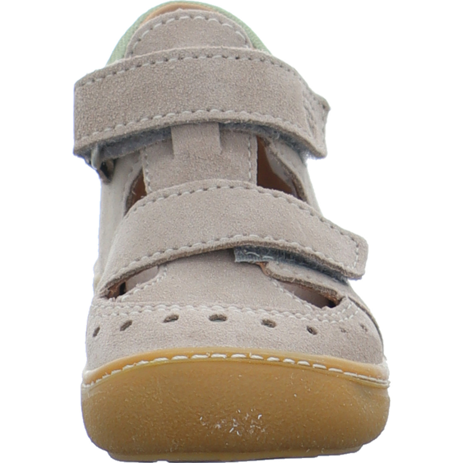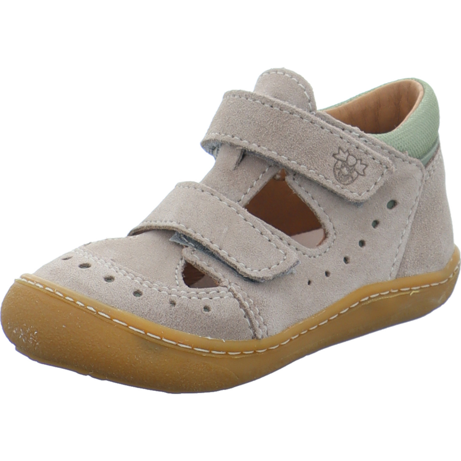shop@ricosta.de_____Der dunkelbeige-grüne Jungen-Lauflernschuh Kris 50 1602100/650 von Pepino by Ricosta besteht aus Veloursleder und Mesh. Die
