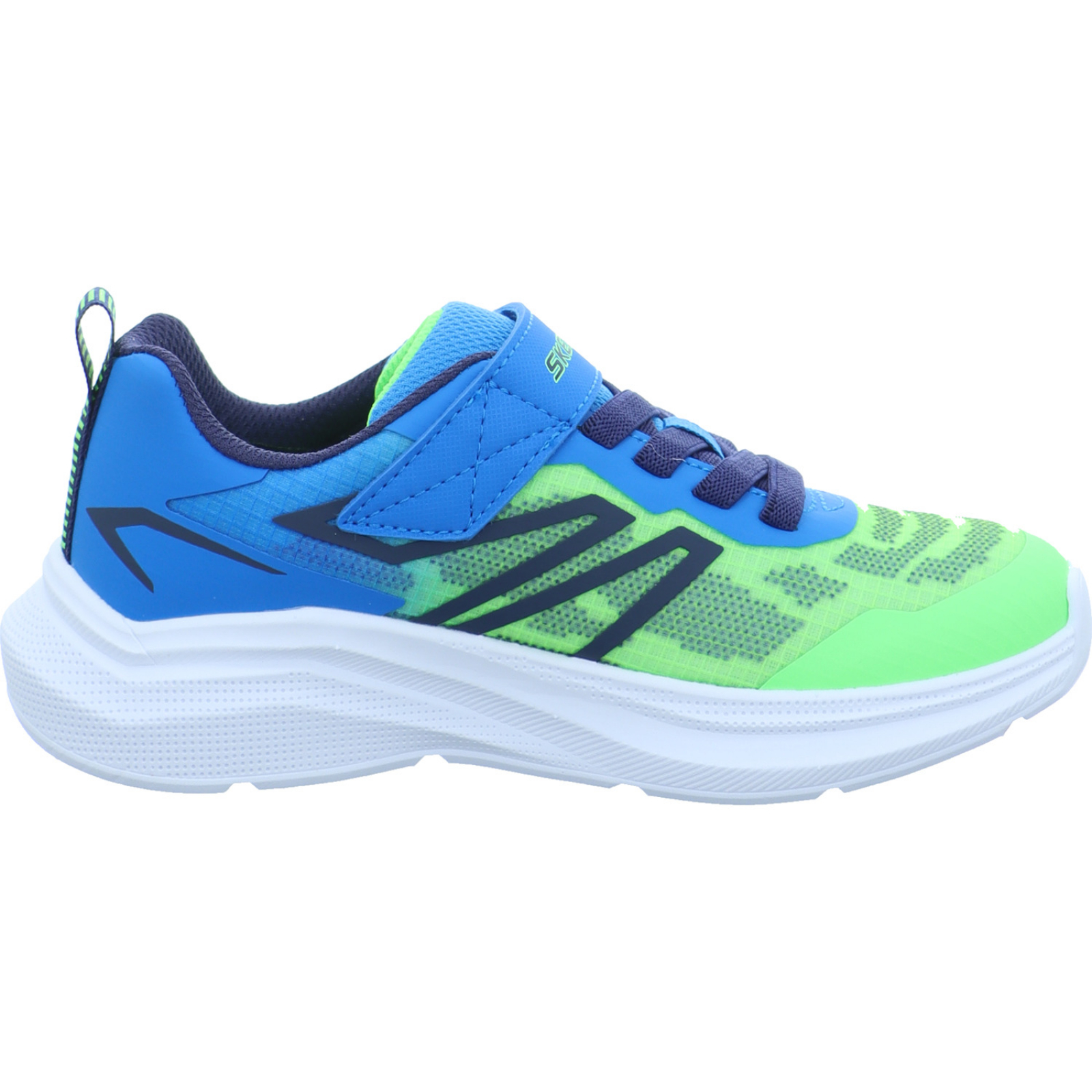 kundenservice@eu.skechers.com_____Der blau-grüne Jungen-Sportschuh Microspec Velocity 404125L LMBL von Skechers besteht aus Textil und High-Tech. Ein Pluspunkt des Modelles ist die Möglichkeit dieses in der Waschmaschine unter den angegebenen Bedingungen zu waschen.