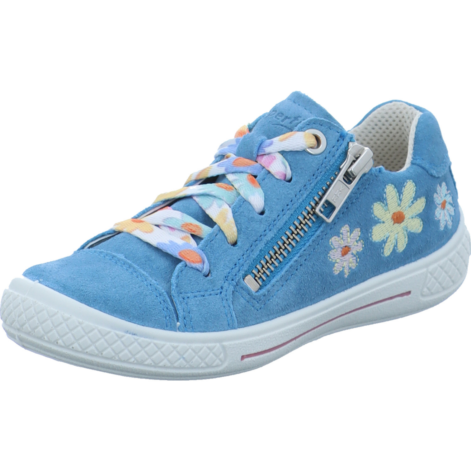 Herstellerinformation: Superfit Legero Schuhfabrik GesmbH Legero-United-Straße 4, 8073 Feldkirchen bei Graz, AT info@legero.com_____Der hellblau-multifarbene Mädchen-Schnürhalbschuh Tensy 1-000093-8400 von Superfit besteht aus Veloursleder.