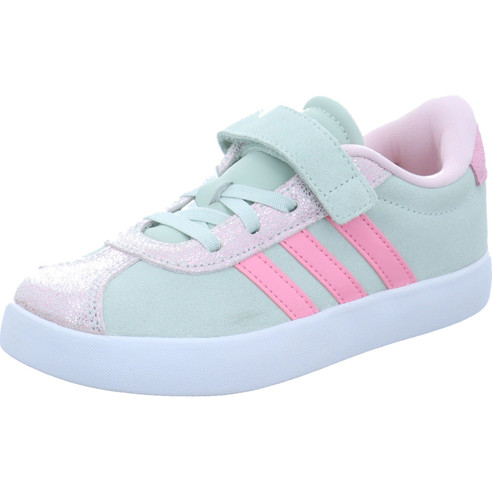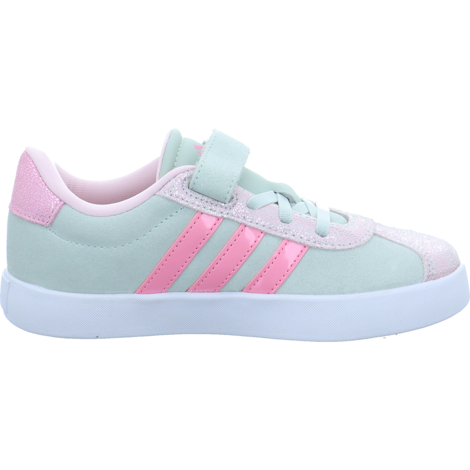 Herstellerinformation: Adidas AG Adi-Dassler-Straße 1, 91074 Herzogenaurach, DE serviceinfo@onlineshop.adidas.com_____Der mint-pinke Mädchen-Sneaker VL Court 3.0 EL C IH1652 von Adidas besteht aus Veloursleder und High-Tech.