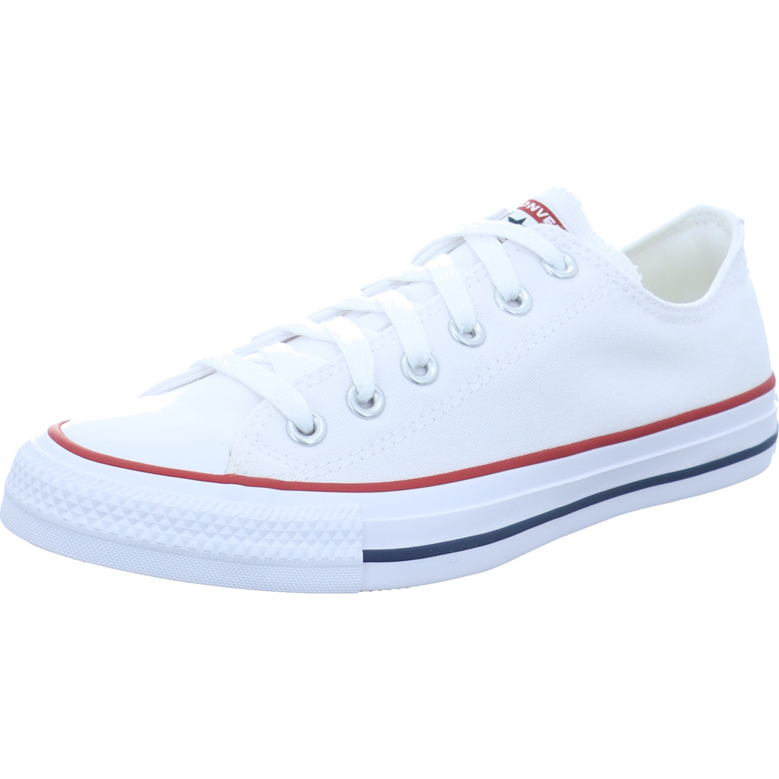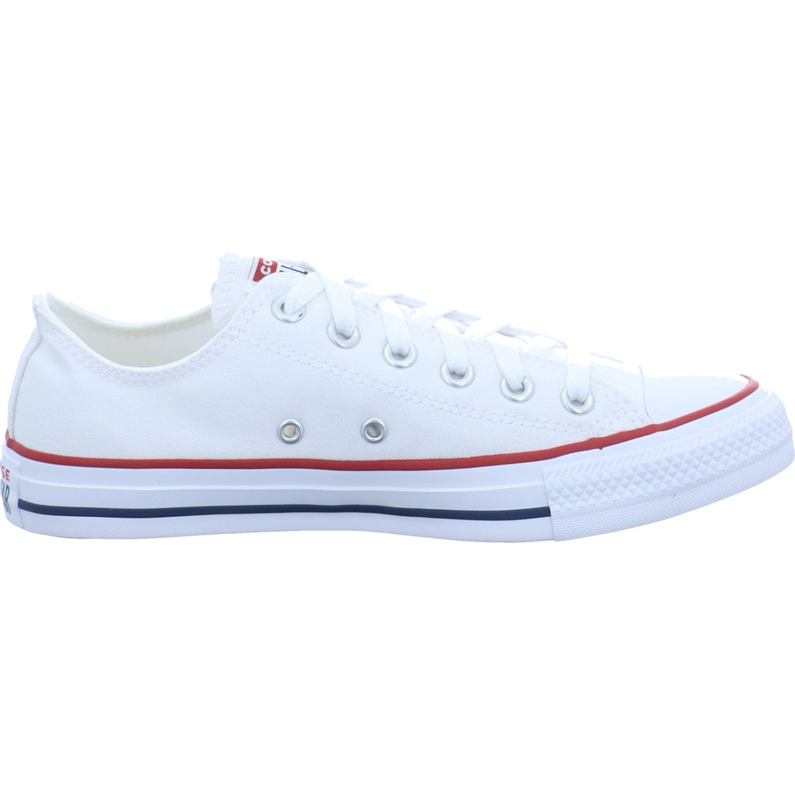 Der weiße Damen Sneaker All Star OX von Converse aus Canvas mit Gummi-Vorderkappe ist ein echter Klassiker! Modelltypisch besteht die Innenausstattung aus Canvas mit gepolsterter, hellbeiger Decksohle. Nicht fehlen darf die profilierte, dunkelbraune Gummi-Laufsohle.